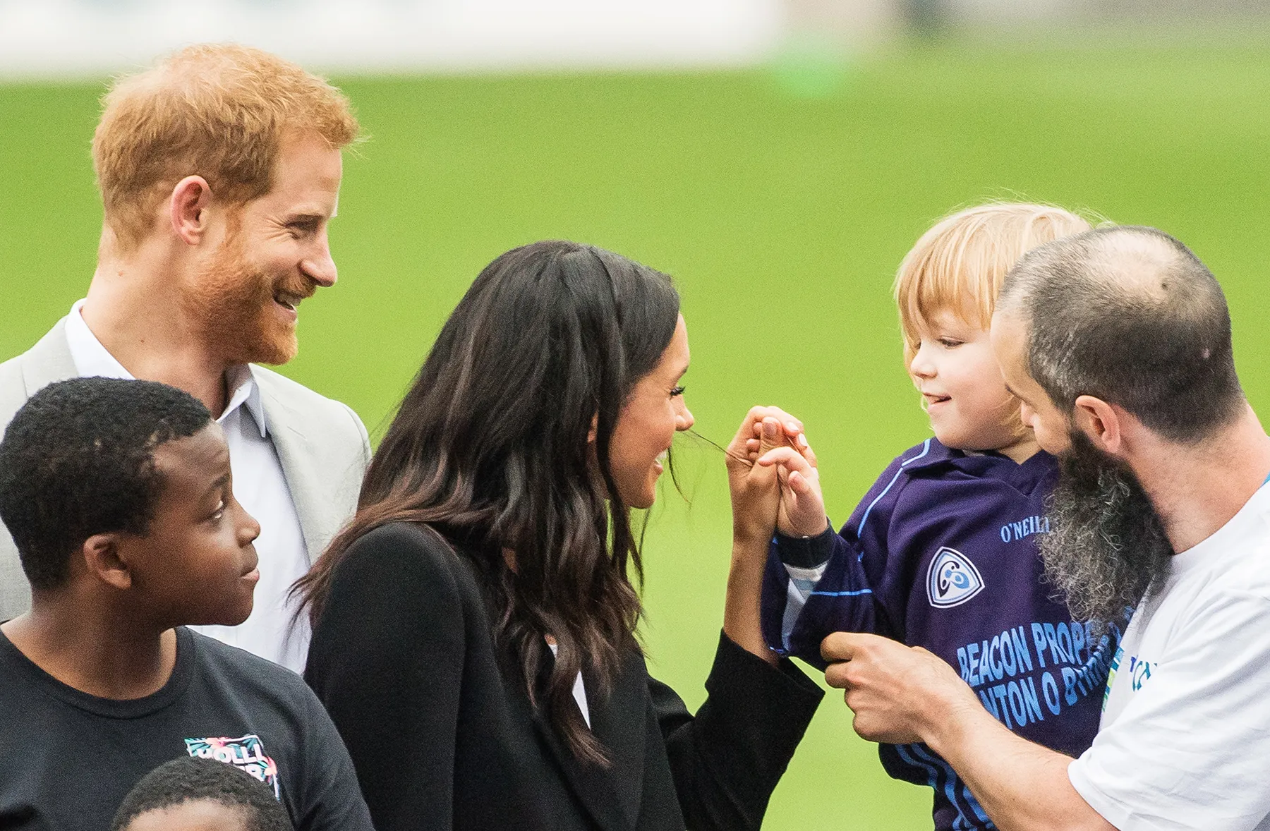 Duchess Meghan (née Markle)’s signature brown locks are magnetic! During her trip to Dublin, Ireland, alongside husband Prince Harry, Meghan encountered an adorable toddler who couldn’t resist petting her mane.