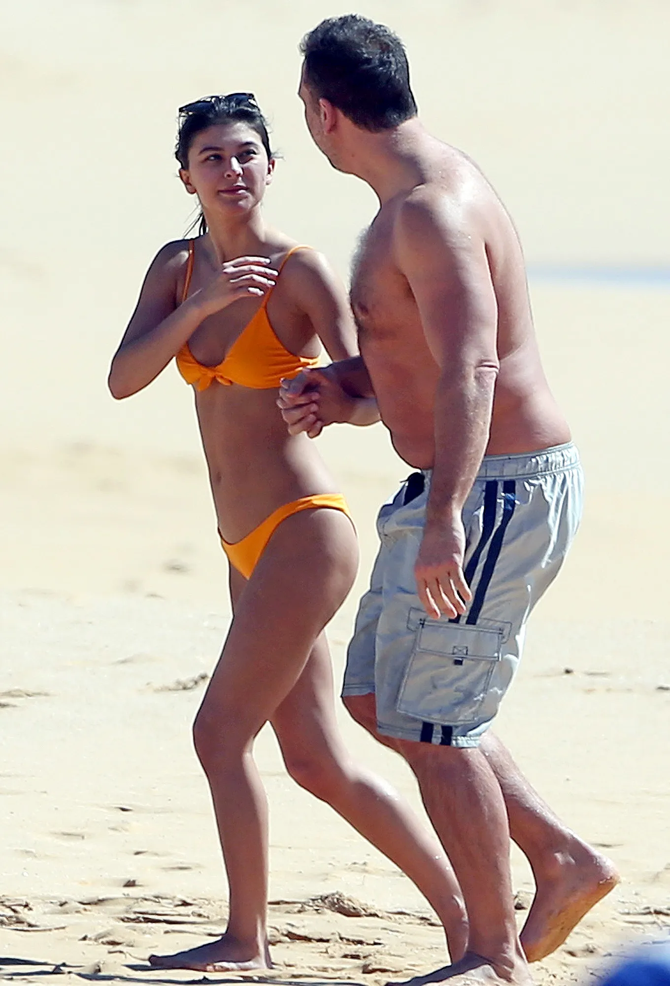 The comedian, 45, and his 19-year-old girlfriend looked to be enjoying the sunny weather while hugging and kissing on the beach on Saturday, February 10. The pair held hands as they went for a stroll, with Taylor wearing a bright orange two-piece bathing suit as Cook wore gray trunks.