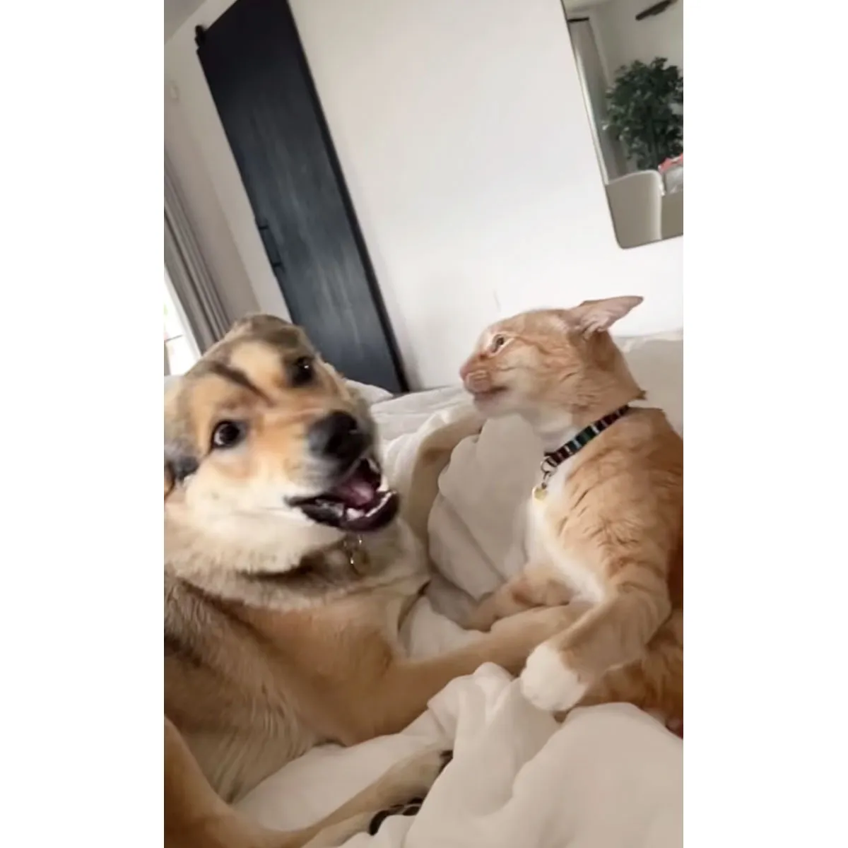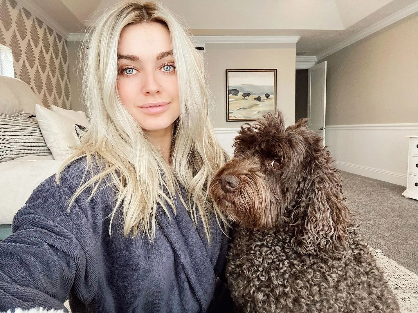 “My three forever Valentines 🖤,” Johnson wrote when she shared a sweet February 2022 Instagram snap of her husband and the dogs lounging in bed.