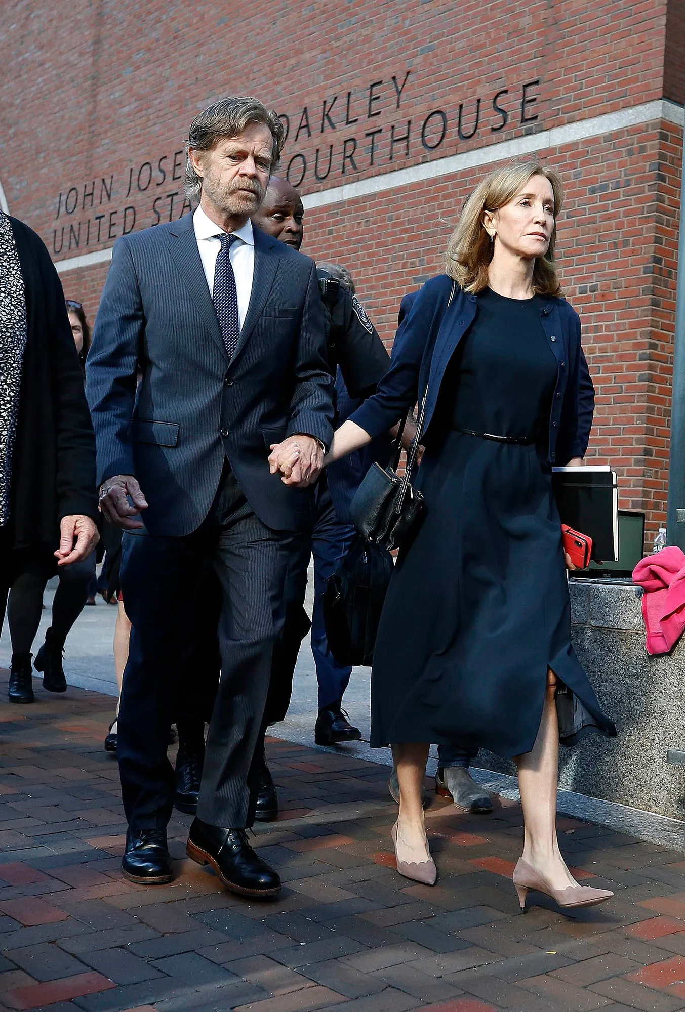 The 56-year-old actress appeared teary-eyed and despondent as she exited a federal court in Boston on Friday, September 13. Her husband, William H. Macy, held her hand. Huffman wore a black dress and navy cardigan, while the Shameless star, 69, coordinated in a black suit and tie.