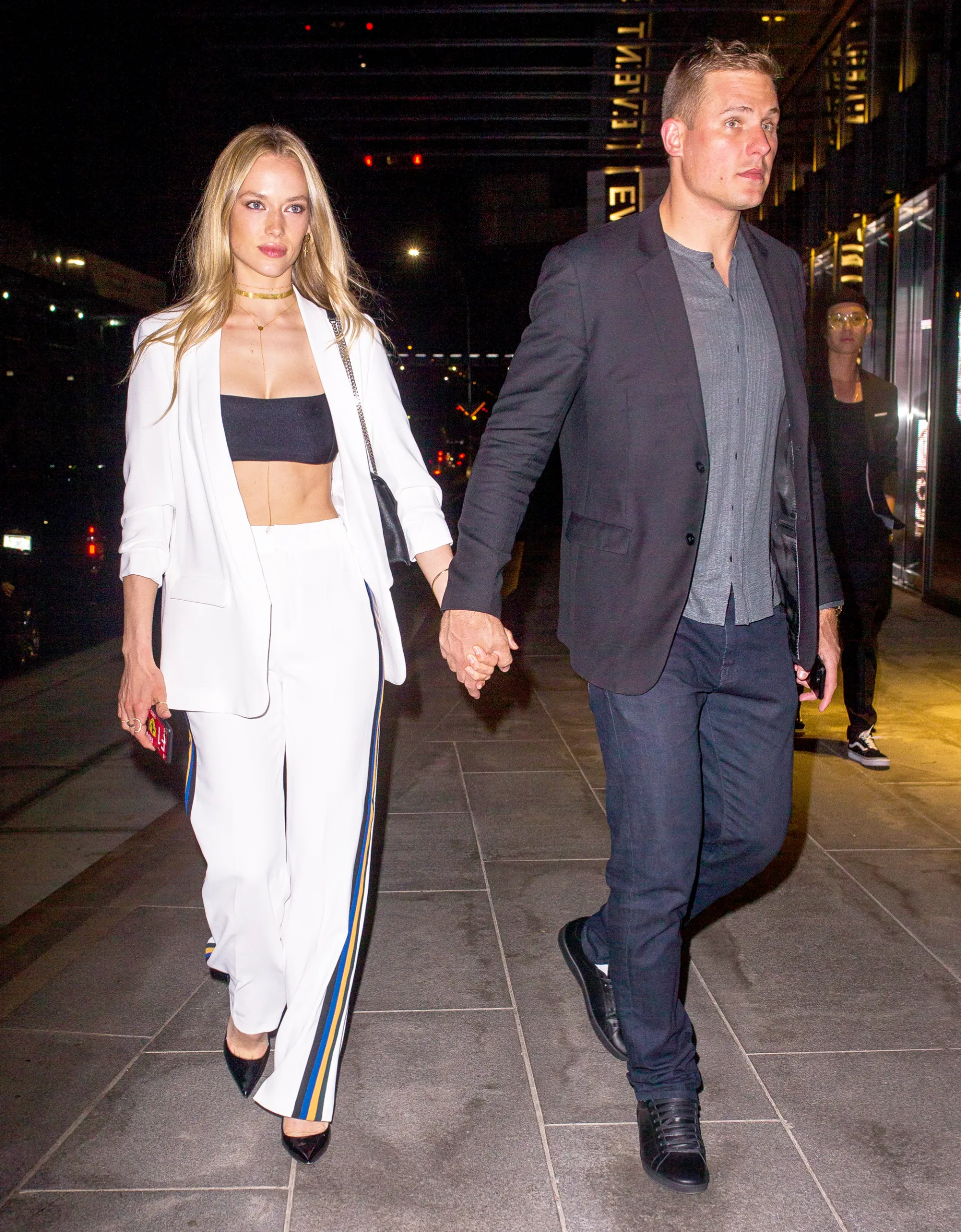 The newly single birthday girl (who amicably split from Zayn Malik last month after more than two years together) celebrated her special day in a gold Versace minidress and metallic heels, completing the look with a gold manicure and matching eye shadow. She arrived at the bash with her sister, Bella Hadid, who wore a leopard-print dress with gold embellishments and complementary sandals.