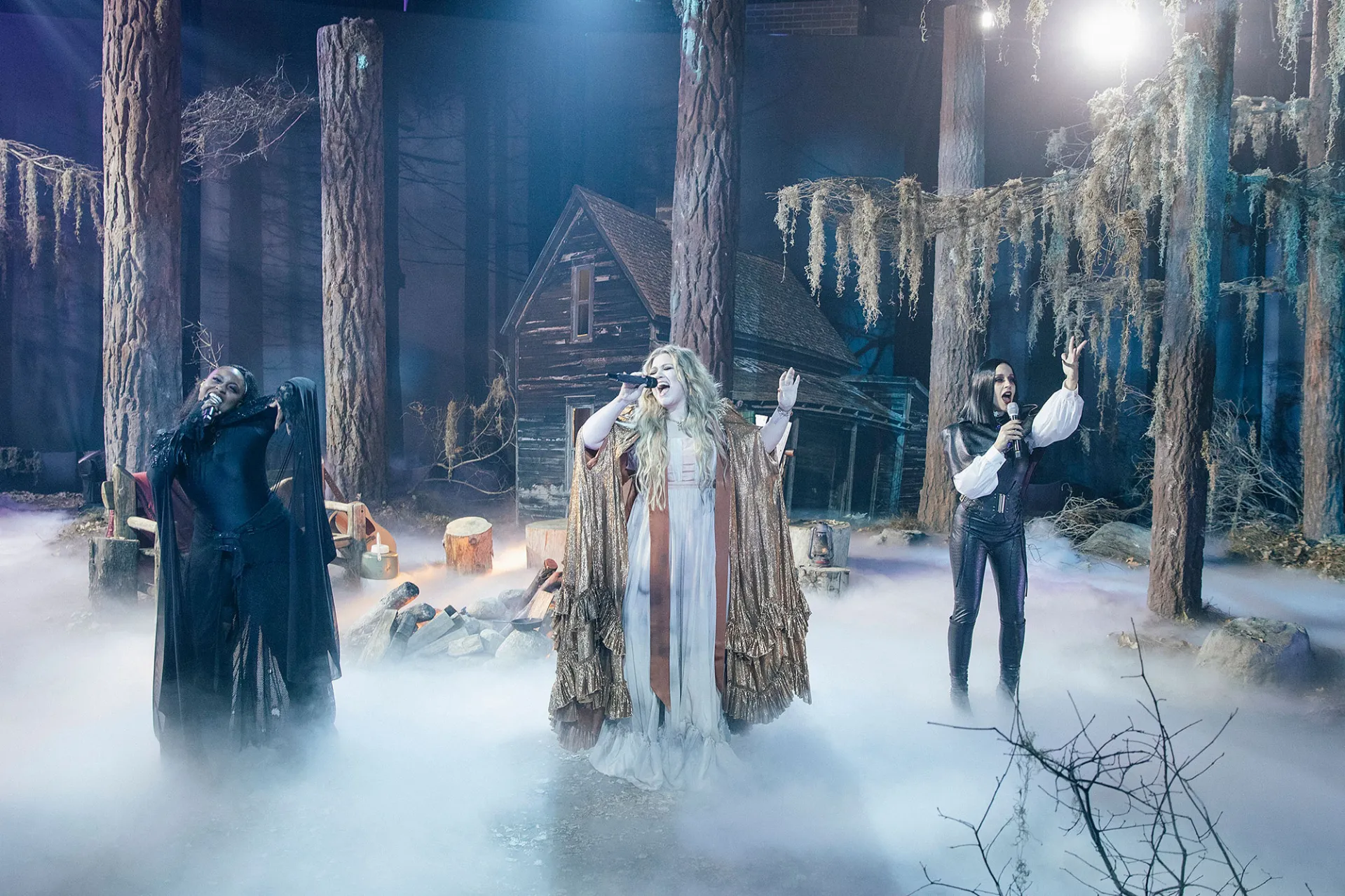 “Happy #Halloween!” a post from the Kelly Clarkson Show‘s official Instagram account read on Monday, October 31, alongside several photos of the scary forest-inspired set. “Today we gather around the campfire in the haunted forest for spooky tales.”