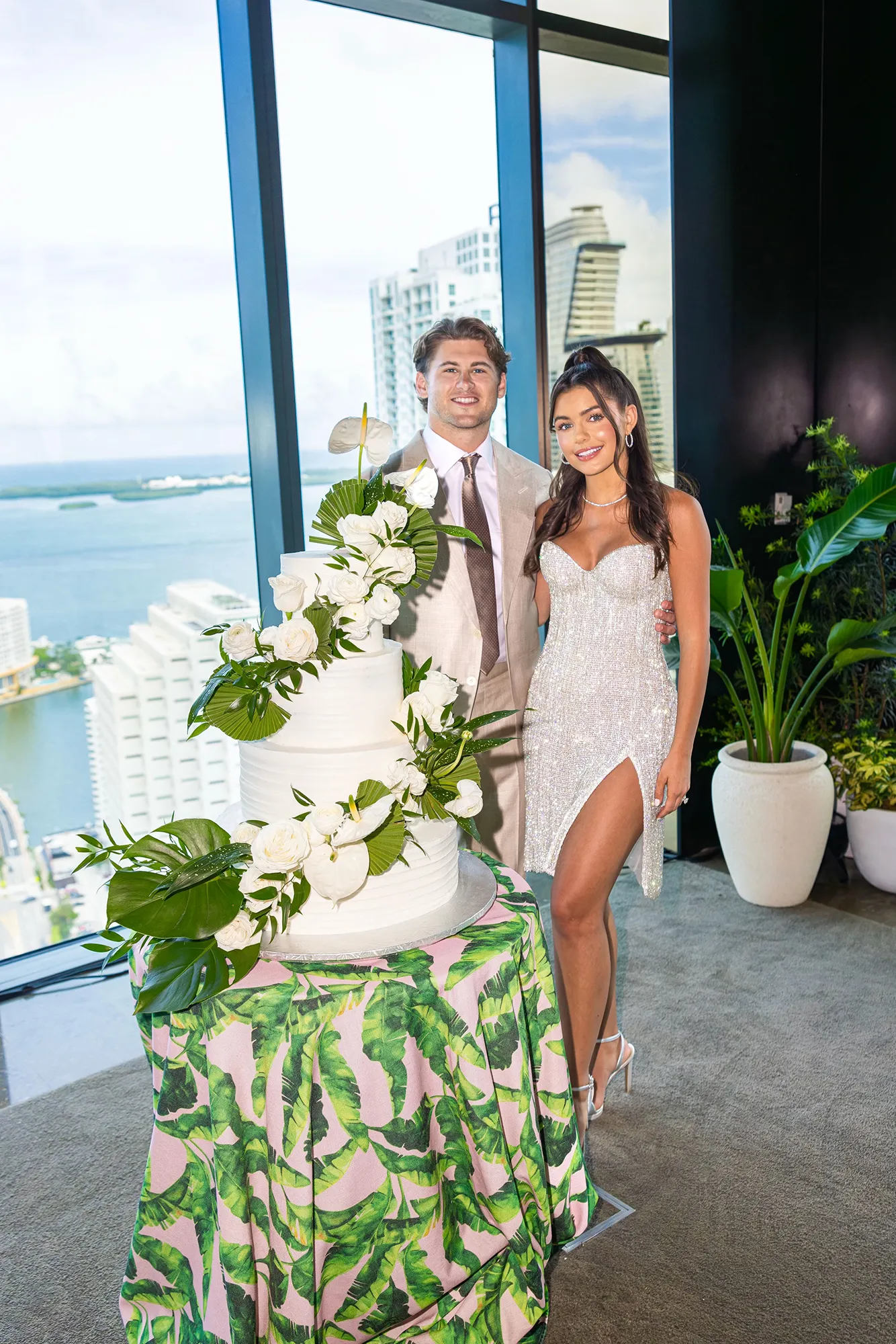 “I’m not a big planner. That’s one of the reasons why we eloped. So thankfully, I just passed over all of the responsibilities to the production team we hired, Petals in Miami, and I’m going to be just as surprised as our guests so I’m excited to see what they come up with,” Sluss told Luxury Handbag Shopping before the bash, noting that she gave the team some personal details to draw inspiration from, including the couple’s first date. At The Beverly Hills Hotel. “We want it to be something that people wouldn’t necessarily expect for me. Because when you go to weddings, a lot of the times it’s very soft. It’s very romantic. It just screams love. For this party, we wanted it to really scream Miami — very tropical, very dark.”