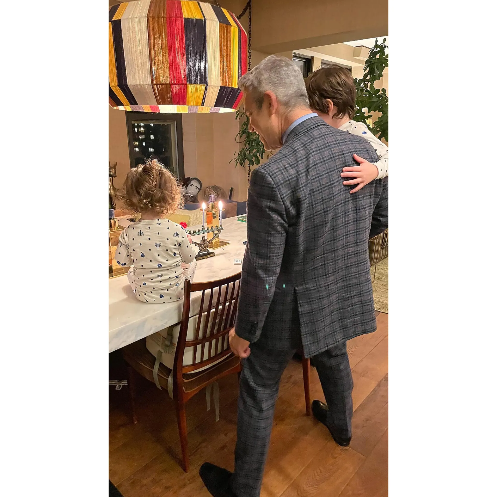 Hanukkah officially began on Thursday, December 7, and Cohen rang in the occasion at home with son Ben, 4, and daughter Lucy, 19 months, who both rocked matching holiday pajamas.