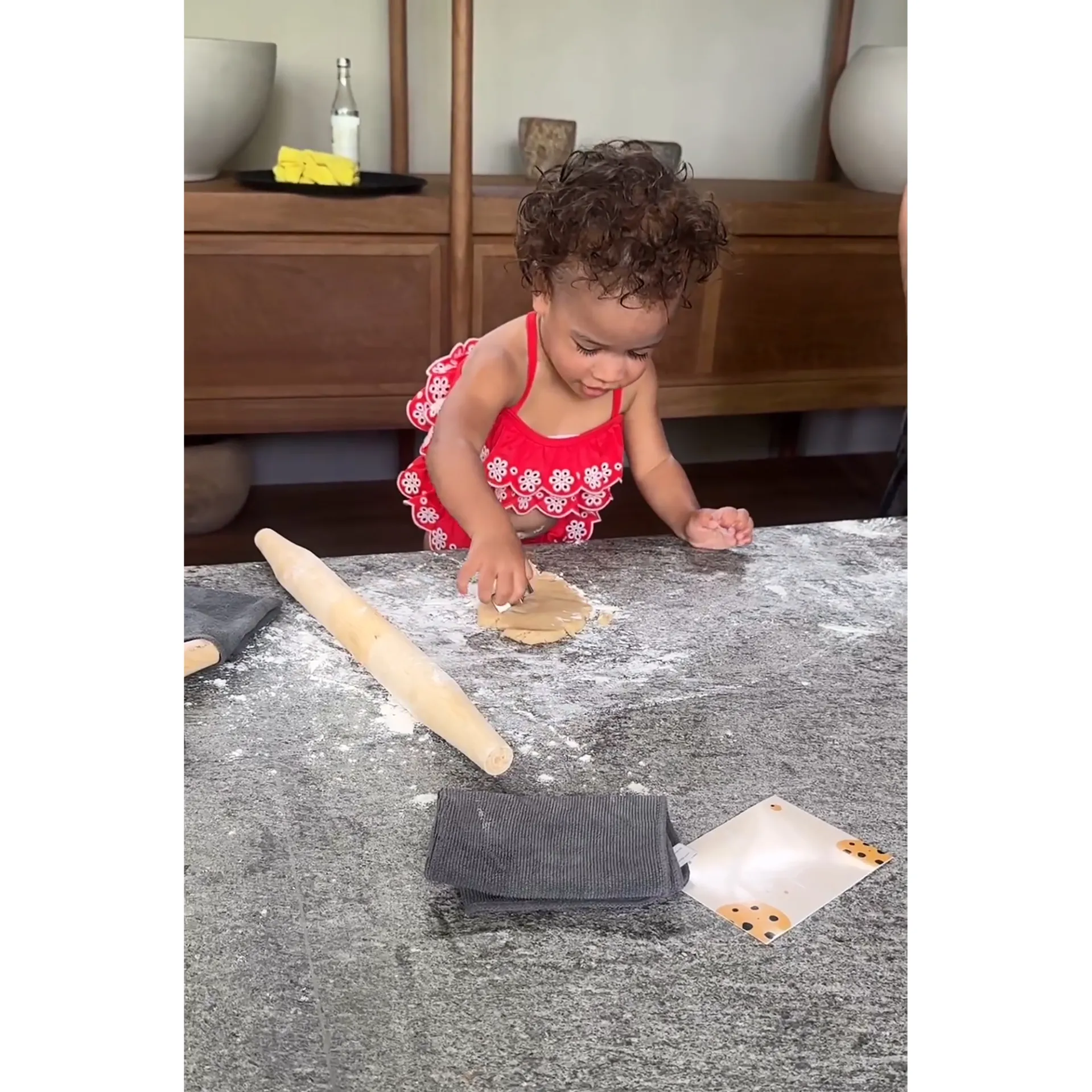 “Don’t talk to me unless u are this talented,” Teigen, 38, captioned a snap of Esti’s alligator-shaped cookie, which she followed up with a video of the 17-month-old rolling out cookie dough. (Teigen and Legend, 45, also share kids Luna, 8, Miles, 6, and Wren, 12 months.)