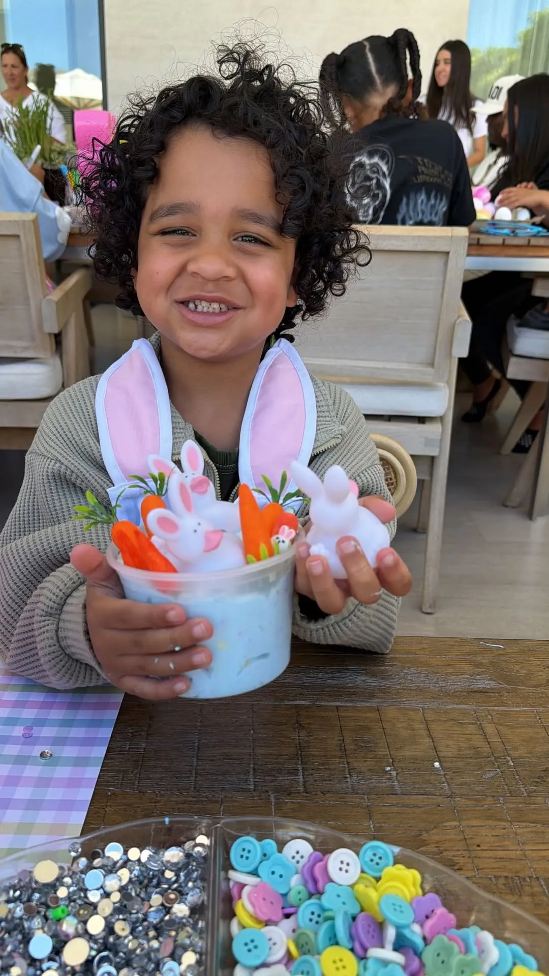 Kris invited her kids — Kourtney Kardashian, Kim Kardashian,Rob Kardashian, Kendall Jenner, Kylie Jenner and Khloé — and their respective little ones for a pre-Easter gathering. The crew enjoyed tasty treats and completed various art projects, including DIY beaded jewelry and egg decorating crafts.