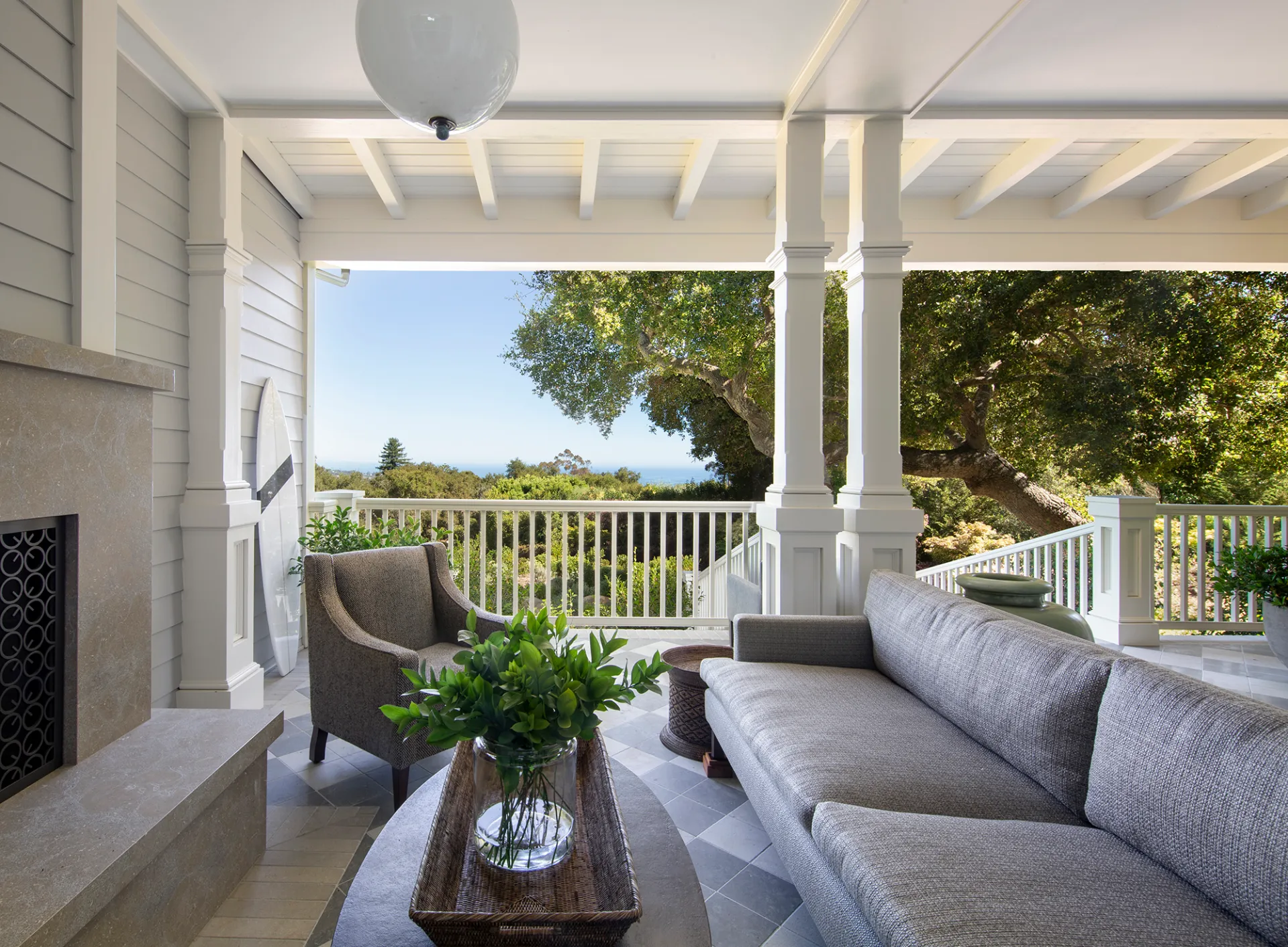 After an extensive facelift, the actress added nearly 3,000 square feet to the posh property — which is listed with Riskin Partners Estate Group and boasts famous neighbors like Prince Harry and Meghan Markle and Gwyneth Paltrow — by enhancing the entryway with a porch that looks out to the Pacific Ocean, while three cozy fireplaces were added to the living room, primary bedroom, and patio.