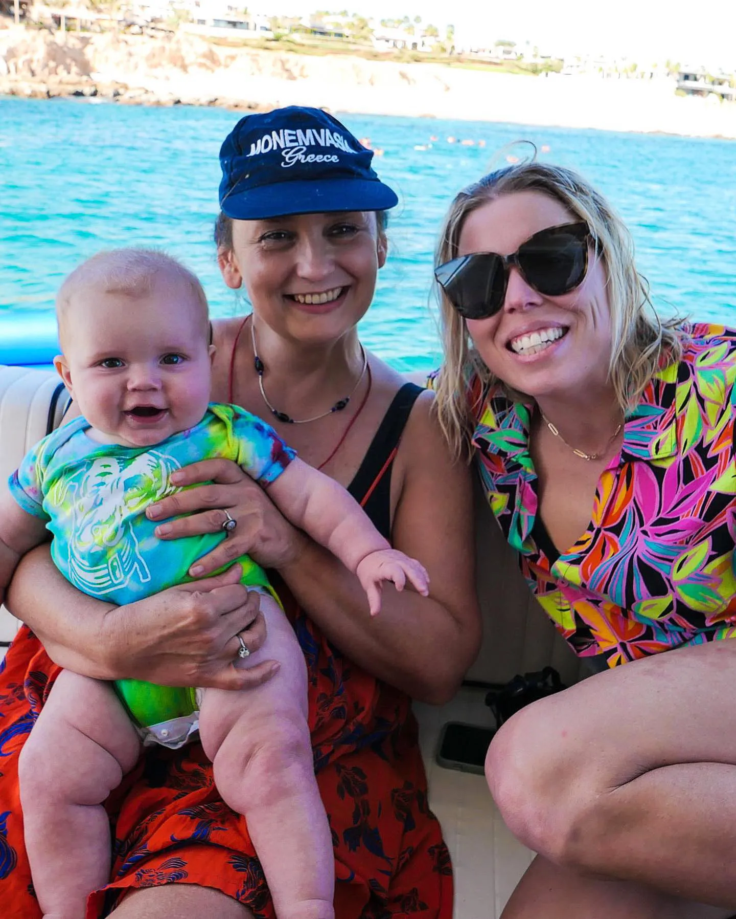 Dobrev showed off her fun side in one image as she toasted the group with a red Solo cup at the front of the boat. She also highlighted her and her partner’s families in a series of snaps, including a close-up of her mom holding White’s nephew as his sister, Kari, sat beside them both.