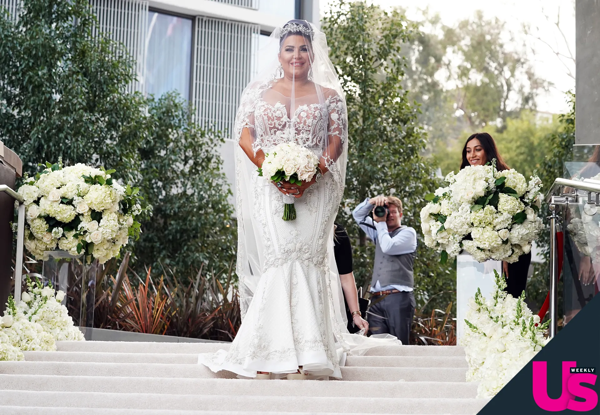 Wedding bells are in the air! Shahs of Sunset star Mercedes “MJ” Javid married her fiancé, Tommy Feight, in a gorgeous ceremony at the Jeremy West Hollywood on Saturday, April 21. The couple exchanged vows in front of a gorgeous flower arrangement designed by Craftsy’s Carly Cylinder.