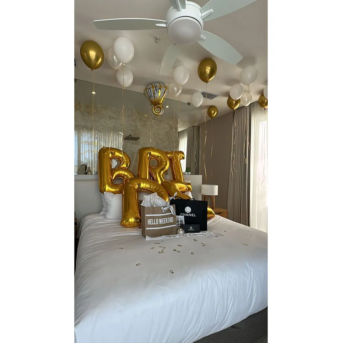 Biles donned a white T-shirt emblazoned with the words “Bride and Boujee” in her social media footage. The gymnast even received a special gift from her soon-to-be spouse as she arrived for the bash. “The sweetest surprise from my future husband,” she wrote alongside a photo of a Chanel purse and shopping bag.