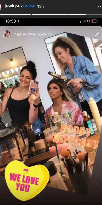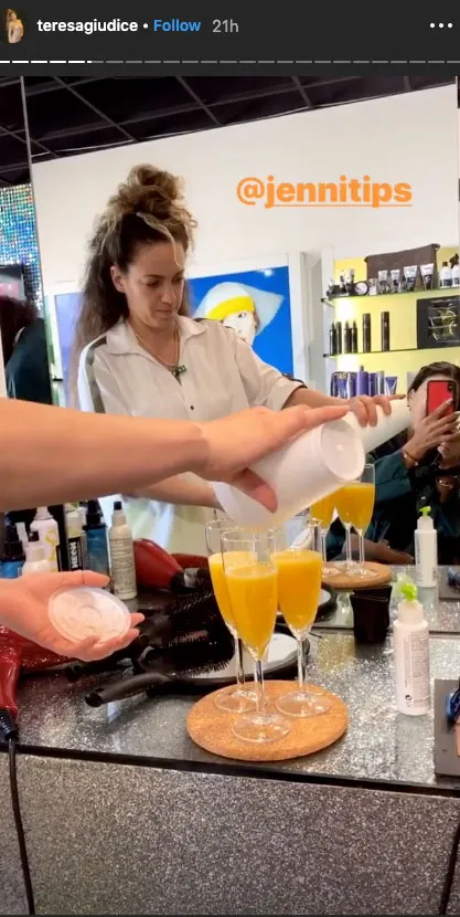 However, it wasn’t just a family Saturday at the soccer field for Teresa for her birthday. Later in the day, the Standing Strong author was pampered at a local New Jersey hair salon where she sipped on mimosas while two hair stylists curled her mane.