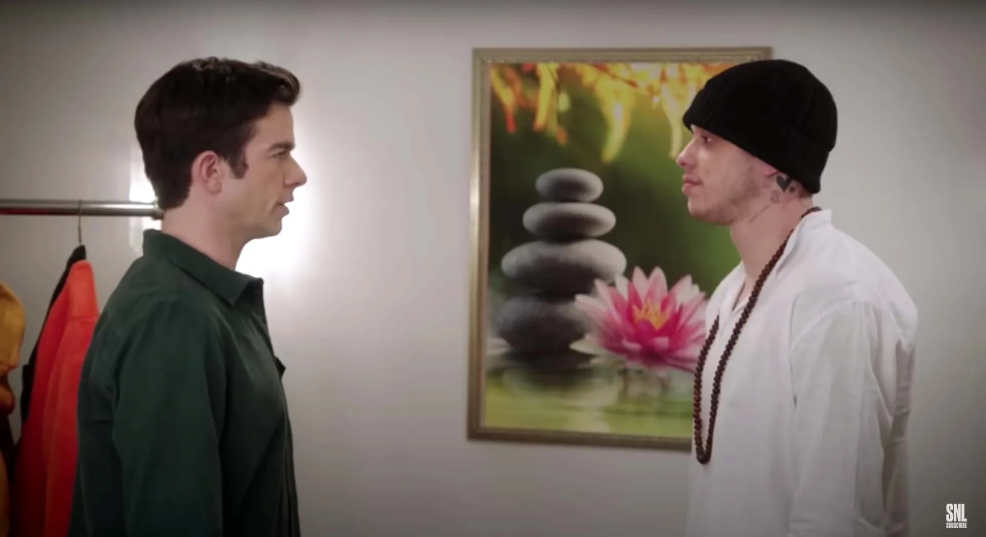 Several months later, Mulaney reflected on the touching moment during an interview with Esquire. “I tell him I love him all the time,” he said of Davidson. “Pete and I came up with that bit together, but in my head, I was like, ‘I hope this is a cathartic thing for him.’ However it came to be, I was very glad it was there.”