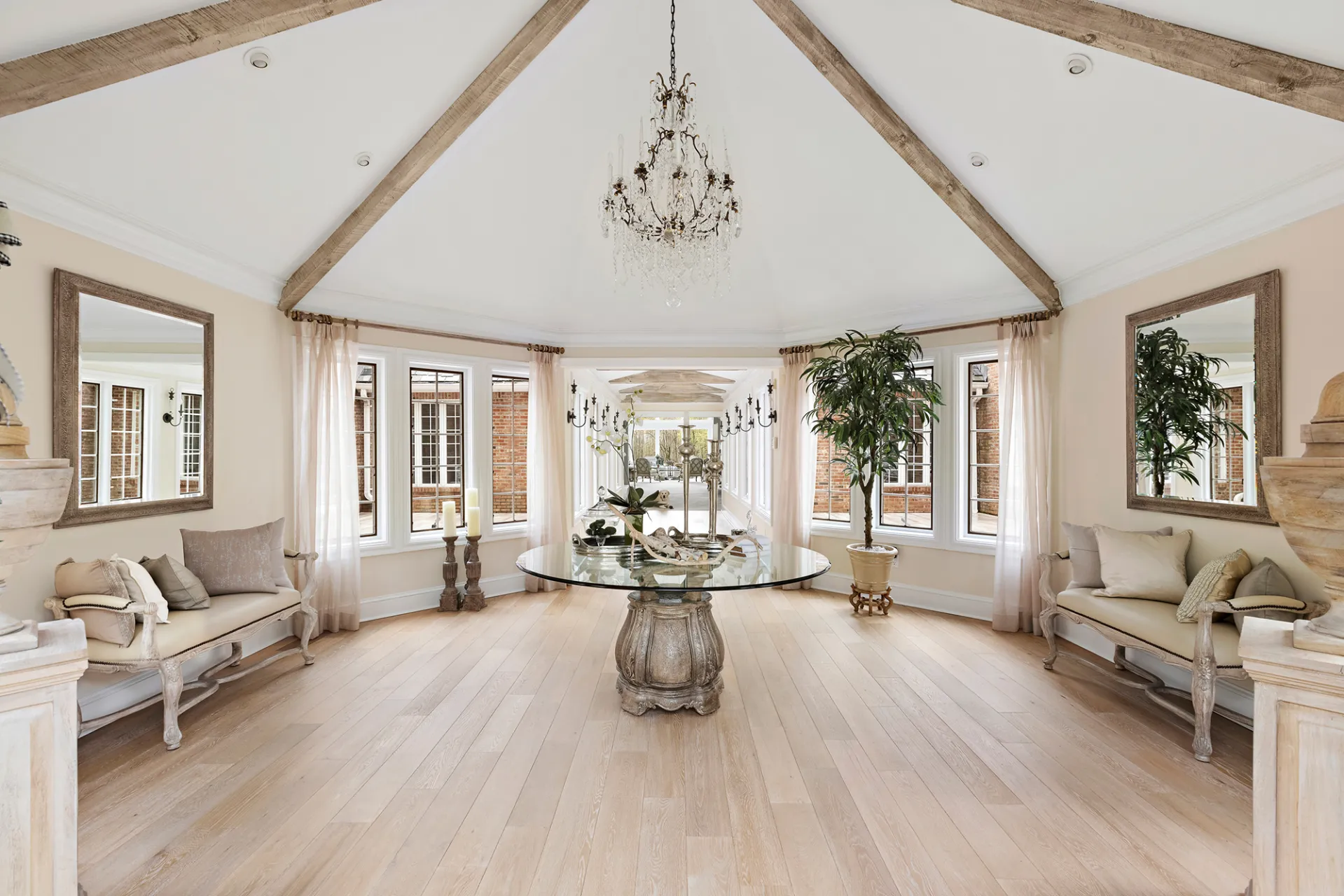 Hidden halfway between New York City and the Hamptons, the magical mansion known as Swan Manor spans over 20,000 square feet and 11-acres and includes three structures with a total of 14 bedrooms and 14 spa-worthy bathrooms. No detail was left untouched – and no expense spared – from the custom slate roof to the heated flooring and from the masterful stonework to impeccable molding.