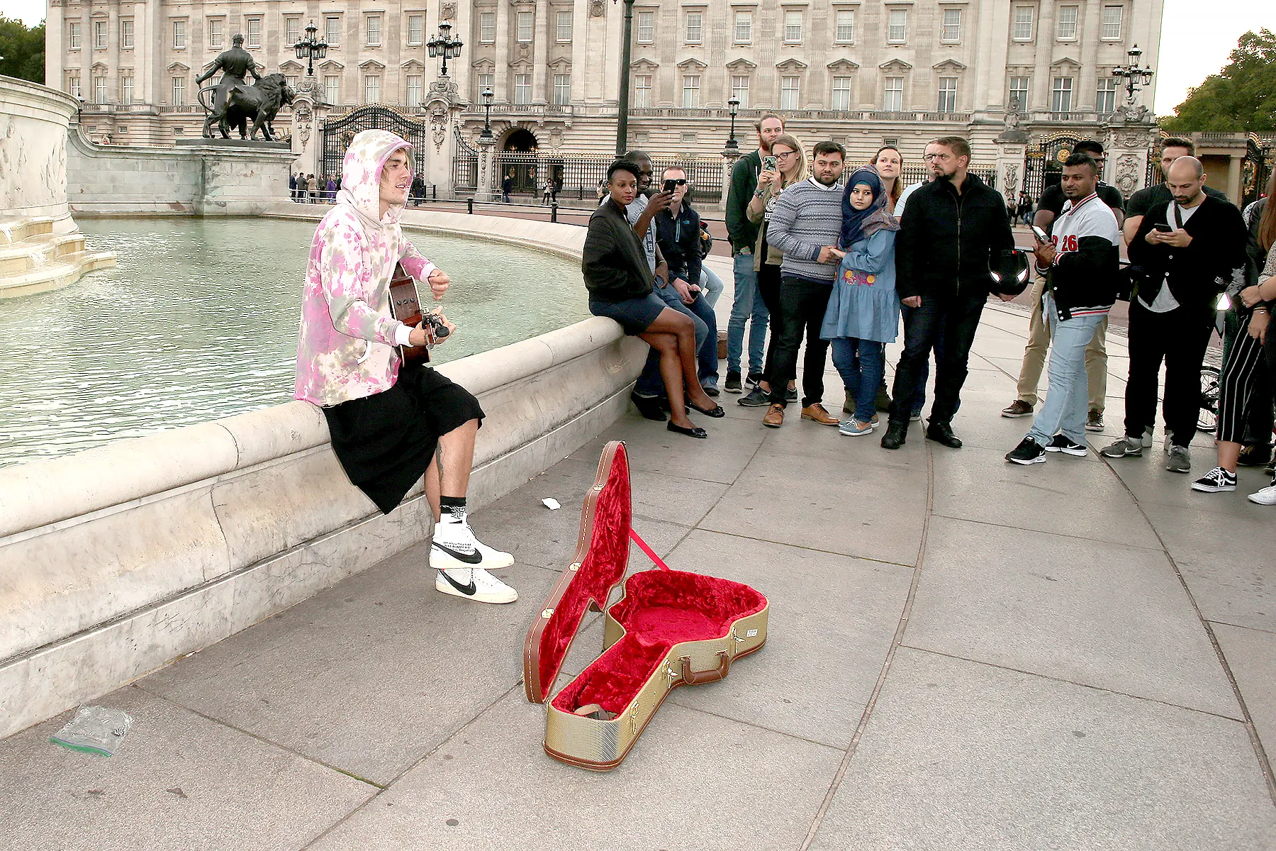 The 24-year-old “Sorry” crooner sat in front of beautiful Buckingham Palace where he strummed his guitar with the 21-year-old model looking on in adoration. The grand gesture comes less than a week after the two cemented their love in a courthouse wedding in New York City.