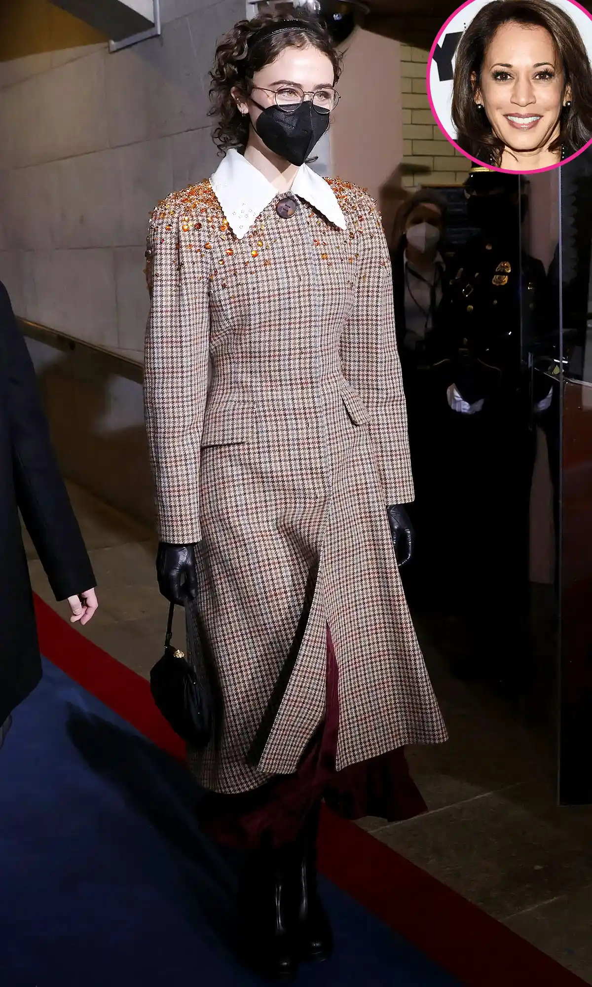 The Parsons School of Design student, 21, made headlines for her Miu Miu plaid, bedazzled coat and Batsheva maroon dress that she wore while attending the Washington, D.C. event on Wednesday, January 20. She attended alongside her father, Doug Emhoff, and brother, Cole Emhoff, in support of Harris, 56.