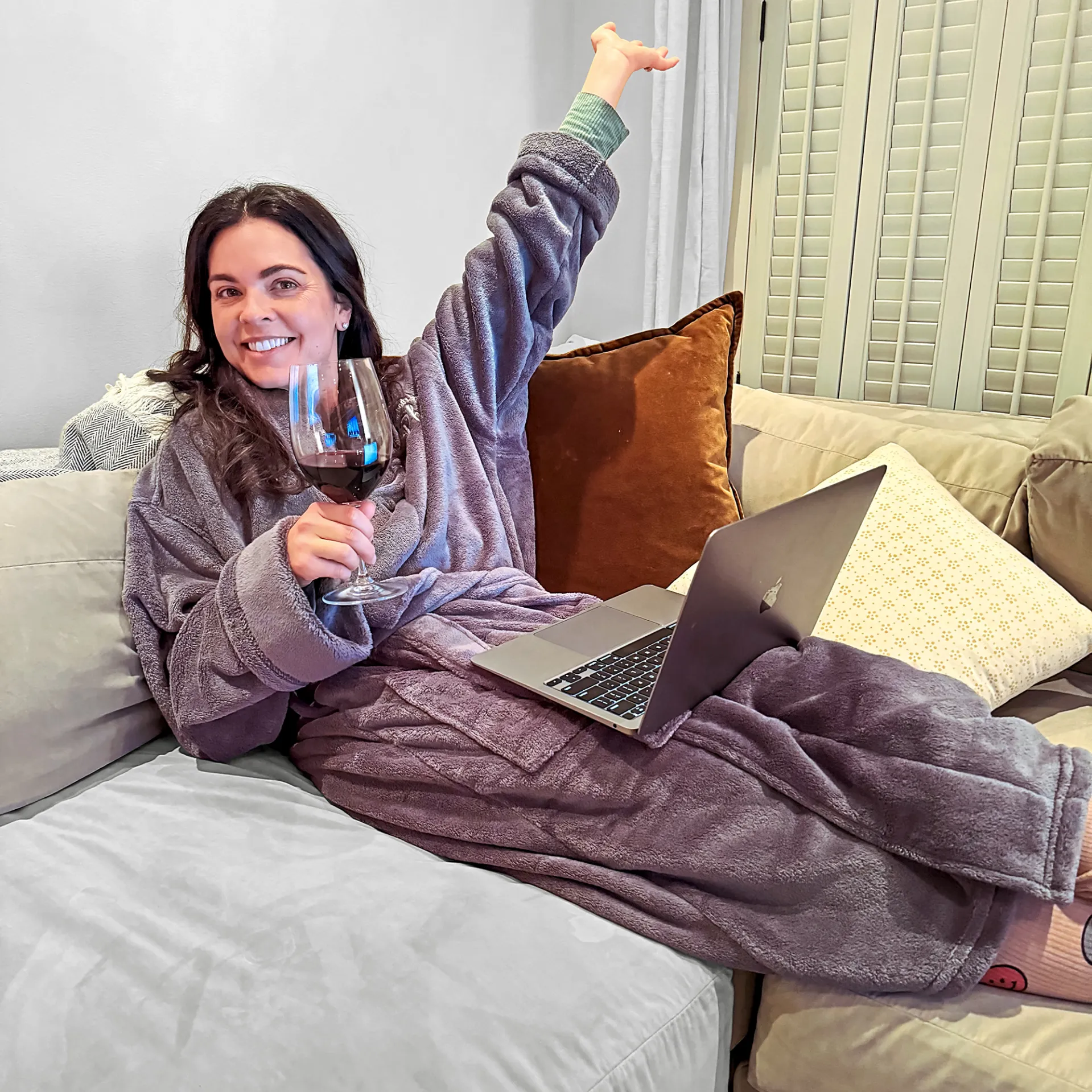 To wrap things up, Biegel lays back and relaxes alongside her husband, whom she wed in 2018. That’s where a glass of vino comes in.