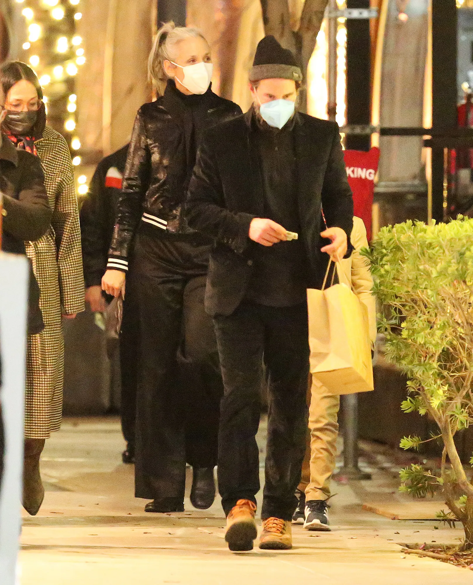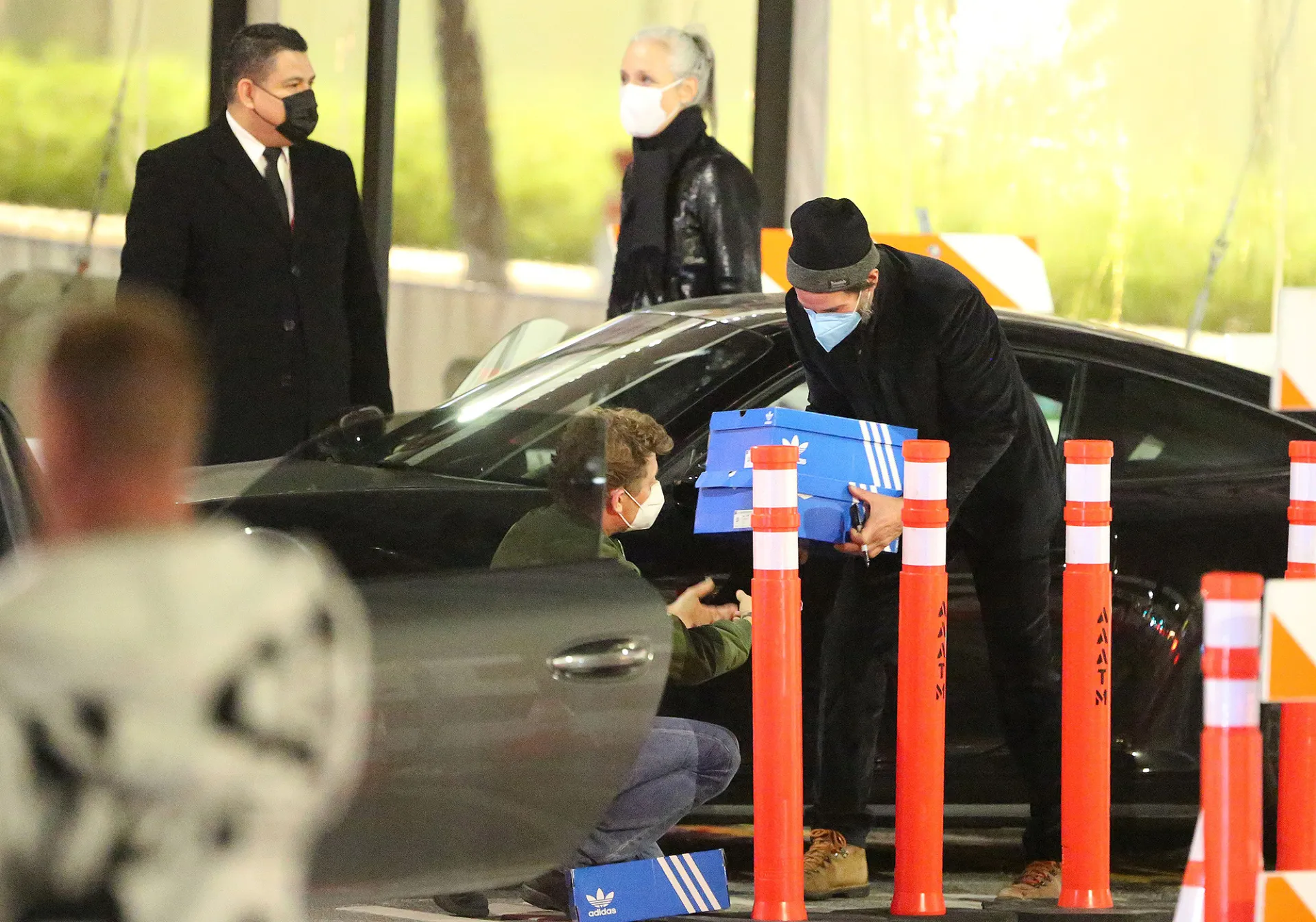 Photos from the couples’ double date showed the friends greeting each other warmly. The group dressed casually and were all masked up outside the restaurant. For their night on the town, Reeves and Grant dressed all in black, with the actor sporting a beanie and coat while his girlfriend wore a bomber jacket and scarf. At one point, Winter pulled a few boxes of Adidas out of the car for his old friend to sign.