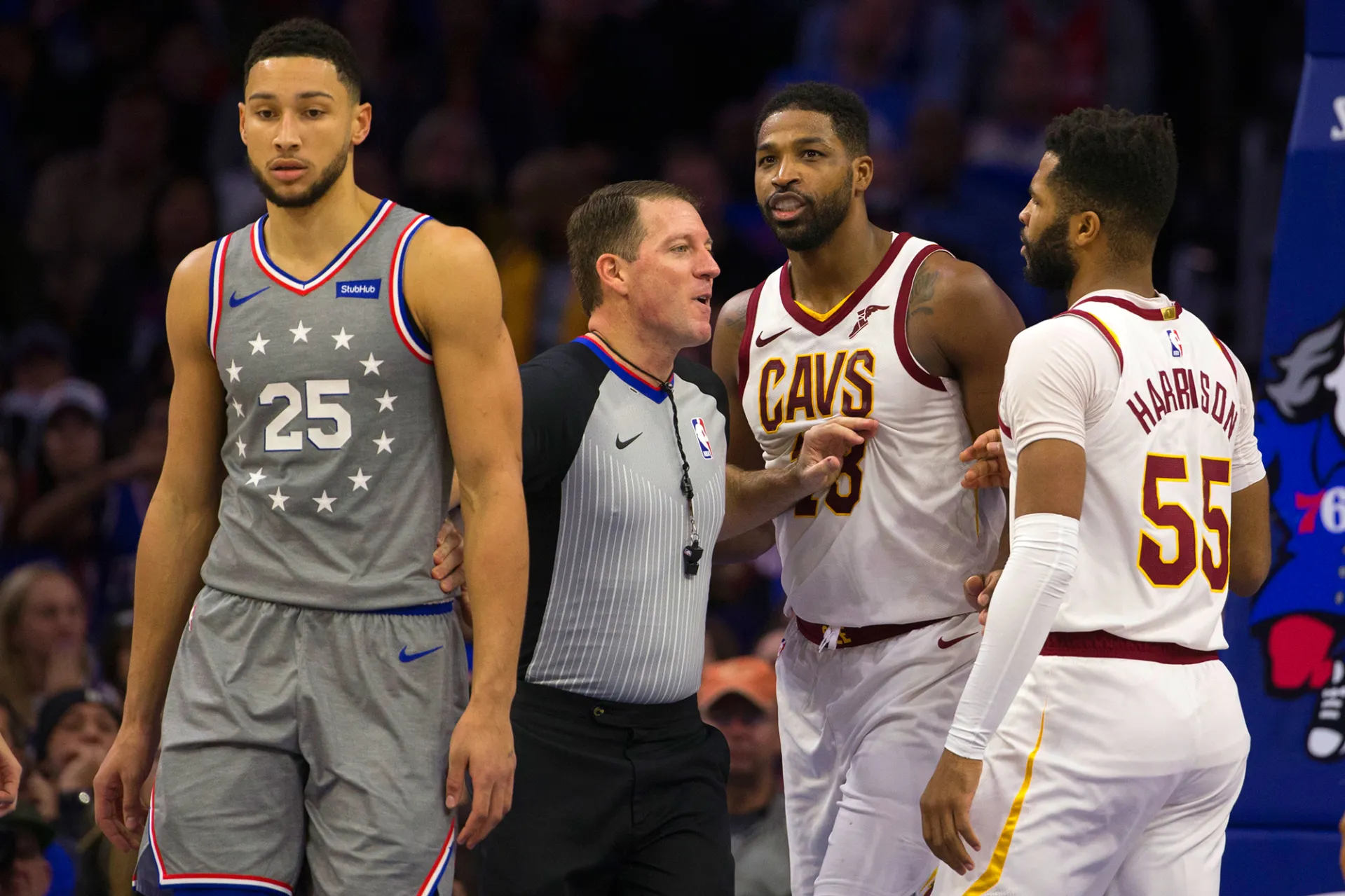 Simmons, who the model was linked to earlier this year, and Thompson, who is dating Jenner’s sister Khloé Kardashian, were separated from each other by a referee towards the end of the game. With just 2.4 seconds left in the fourth quarter, Thompson, 27, made a free throw and taunted the Sixers guard. The Australian athlete, 22, responded by giving him the bird, according to Cavaliers Nation.