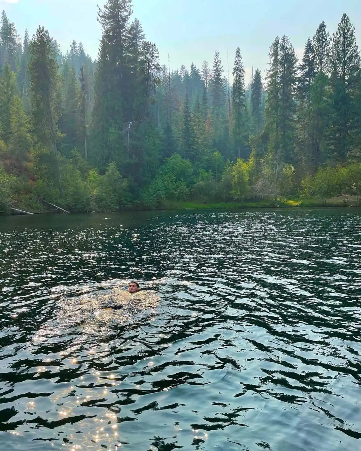 The Phoenix Suns star, who was first linked to Jenner in April 2020, also posted photos of himself enjoying the lake getaway, including one image of him swimming in the water with a forest of green trees behind him.