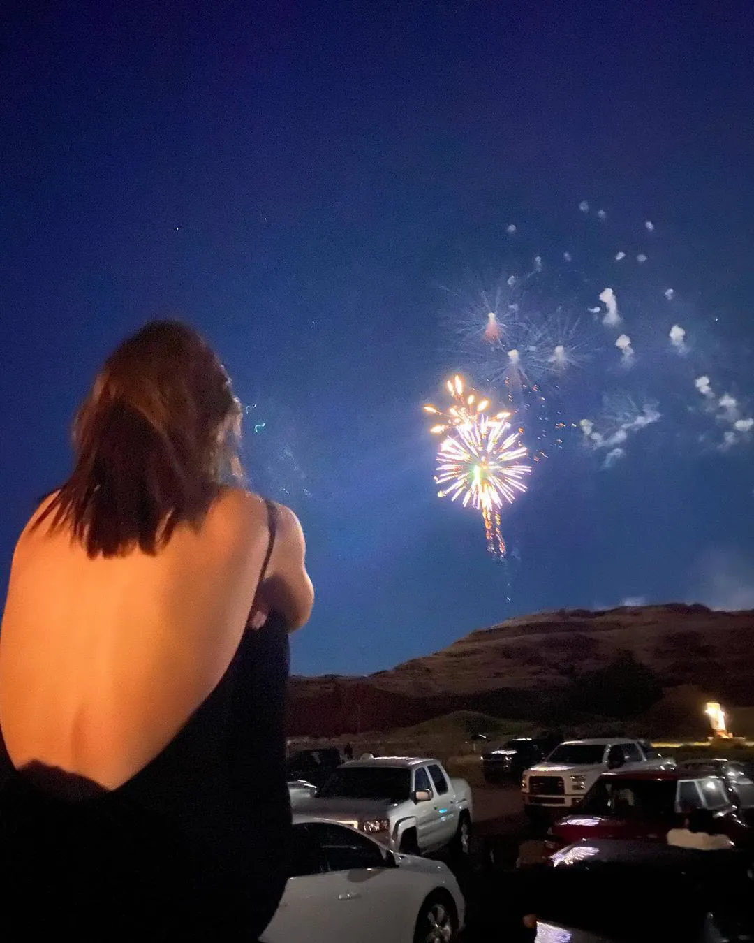 Kendall added a photo of herself taking in fireworks on Saturday, July 4, and rocking a blue bikini on a boat with her friend Fai Khadra.