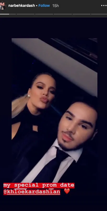 Narbeh and the Revenge Body host also took several videos while en route to the soiree. “Tonight was so special to me,” he wrote of one Instagram Story clip with Kardashian. “Took my baby @khloekardashian to prom with me!”