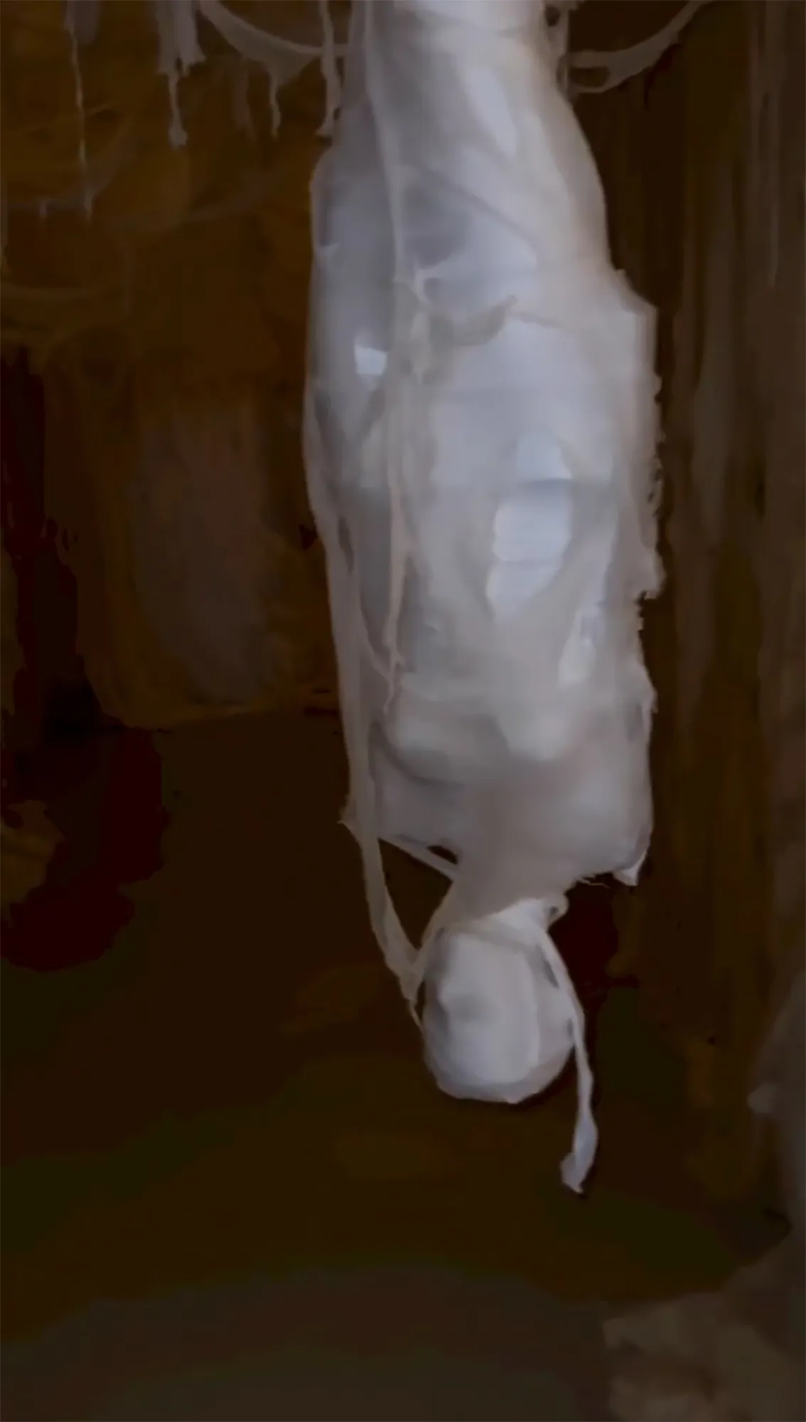 After briefly commenting on cloaked faceless figures sitting around a bonfire, the Kardashians star explained the origin of the white hands poking out of the dirt on either side of the walkway.