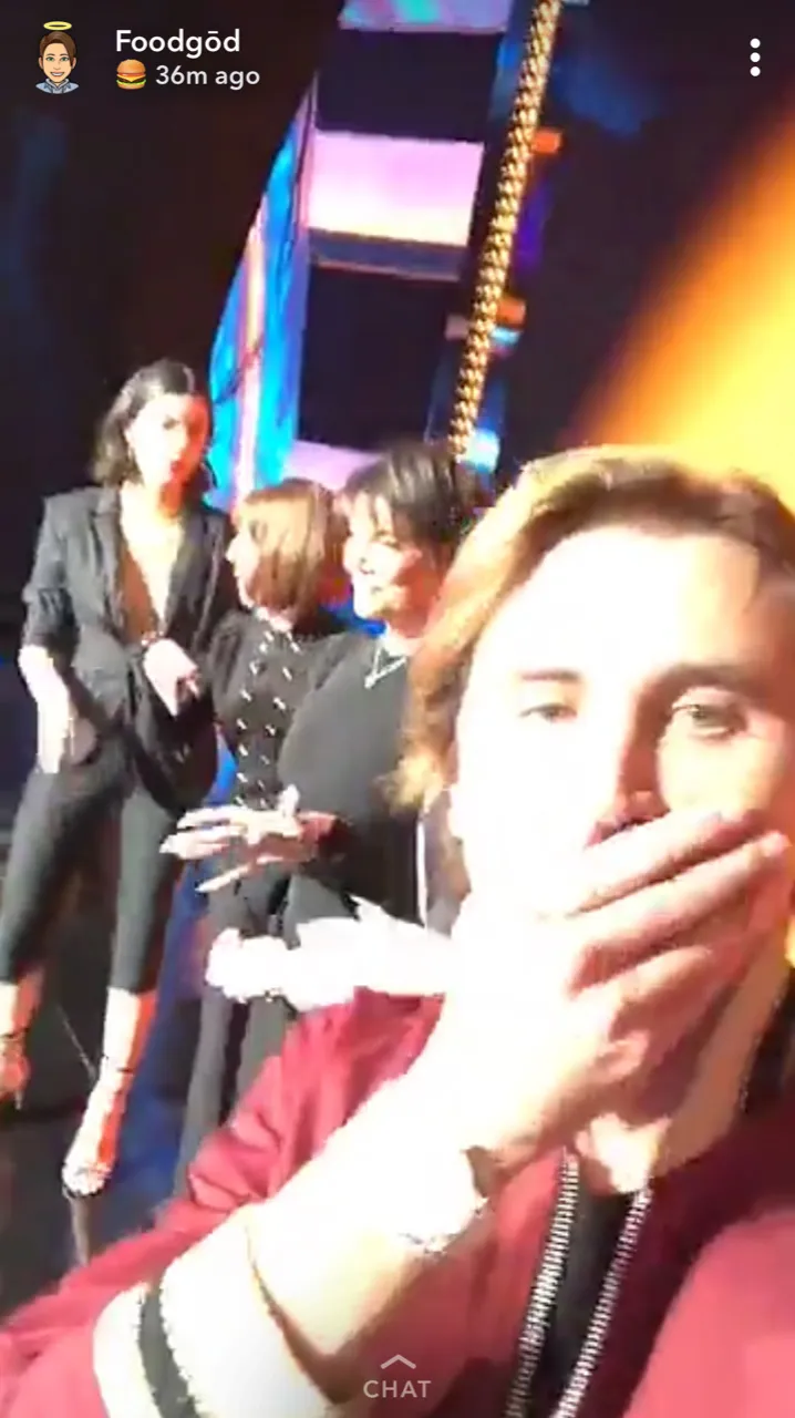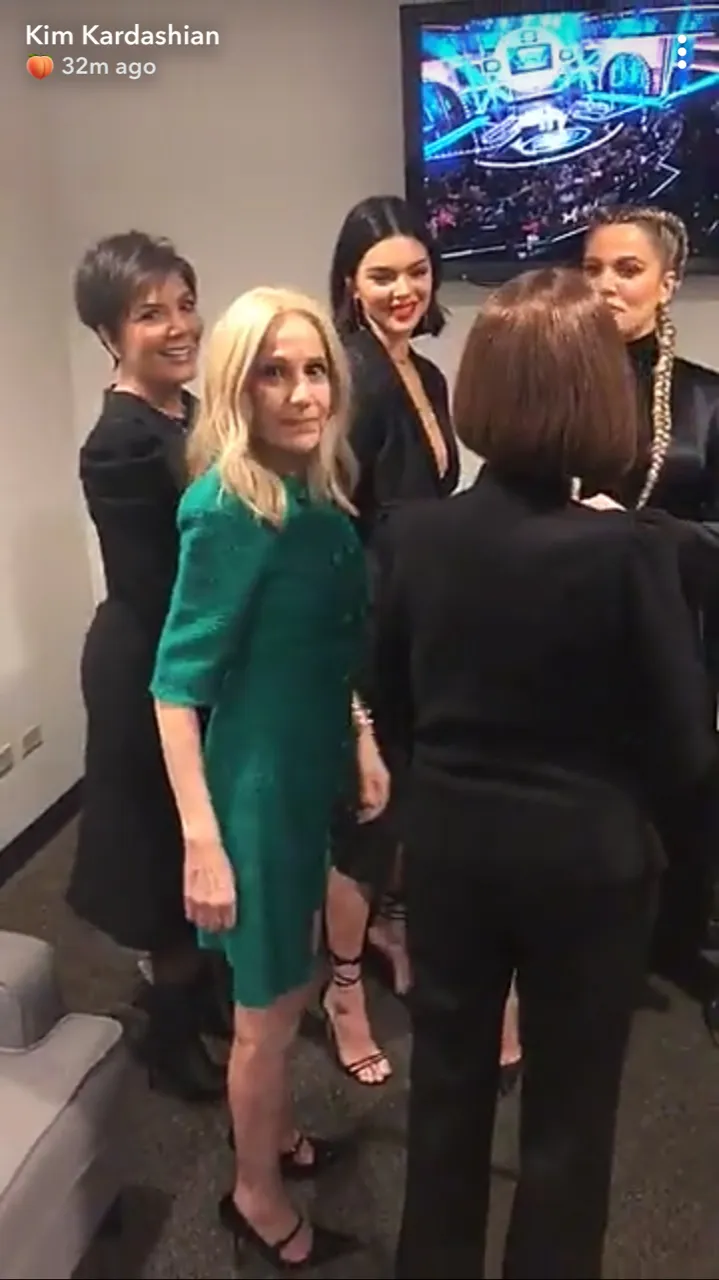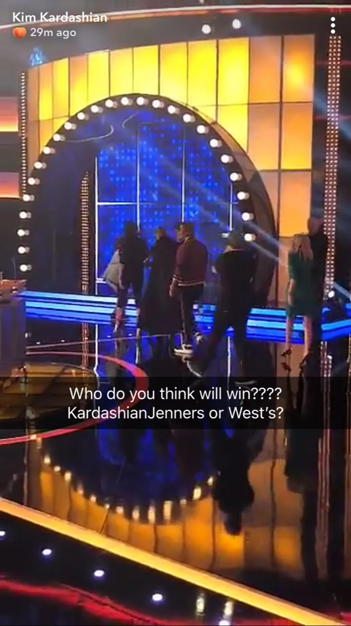 The Keeping Up With the Kardashians star, 37, posted several Snapchat videos from the green room before they headed out to the game show stage.