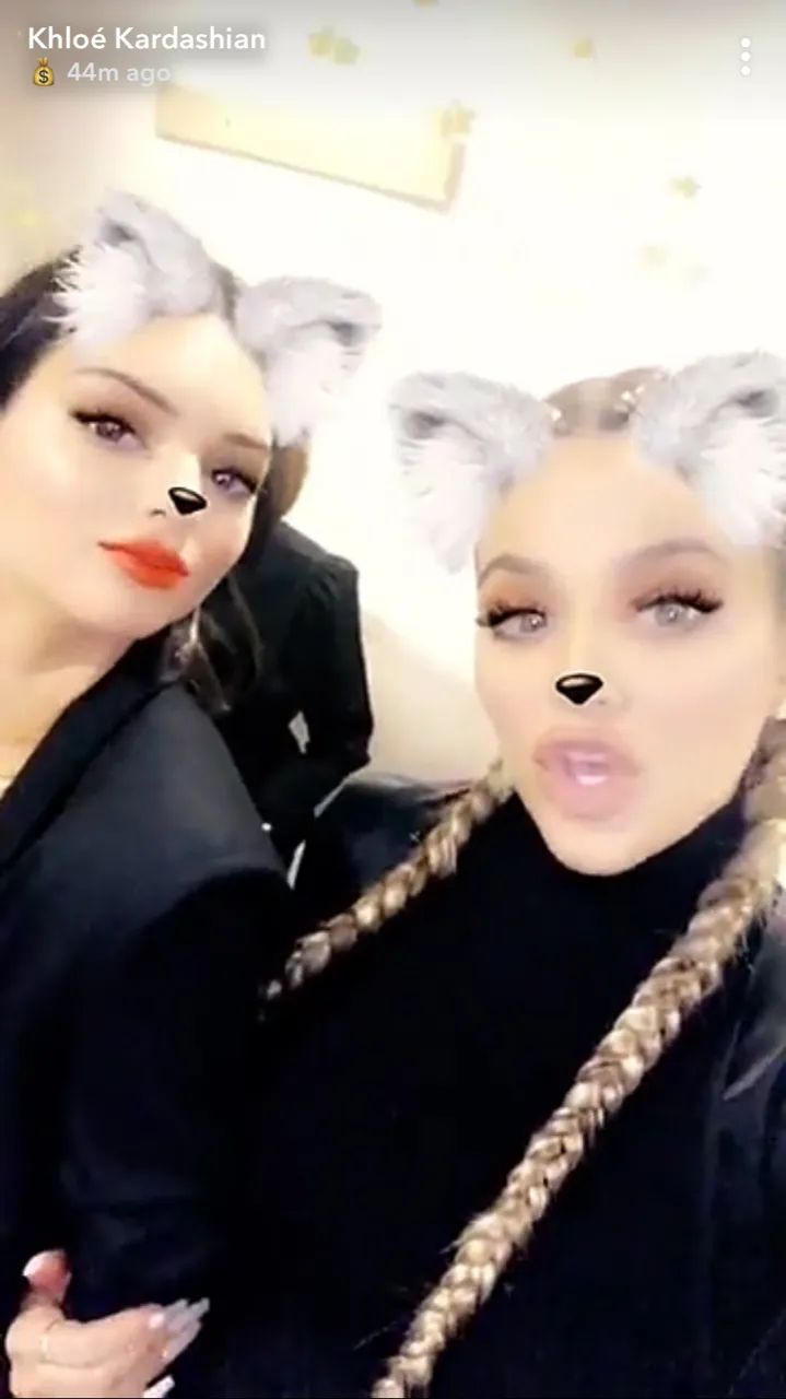 Pregnant Khloé Kardashian, 33, who wore a curve-hugging black outfit that showed off her baby bump, also shared a video backstage with half-sister Kendall Jenner, 22.