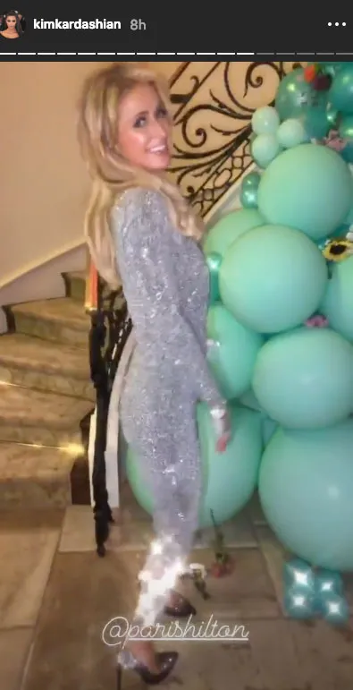The birthday girl rocked a cleavage-baring, sparkly, silver jumpsuit for the bash, and couldn’t help but flaunt her fit figure. Hilton danced around in the ensemble as longtime pal Kim documented her performance on her Instagram Stories.