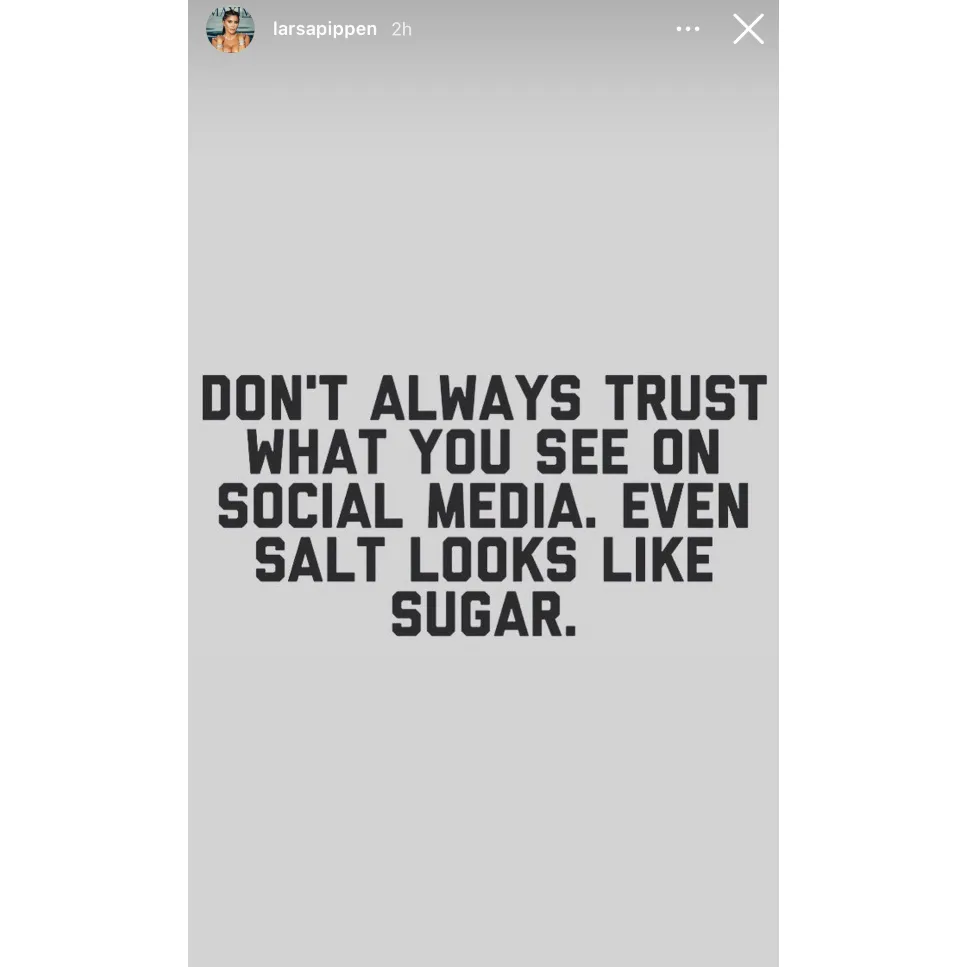 Larsa seemingly addressed the drama surrounding her interaction with Beasley the following day, sharing a quote on her Instagram Story. “Don’t always trust what you see on social media,” the quote read. “Even salt looks like sugar.”
