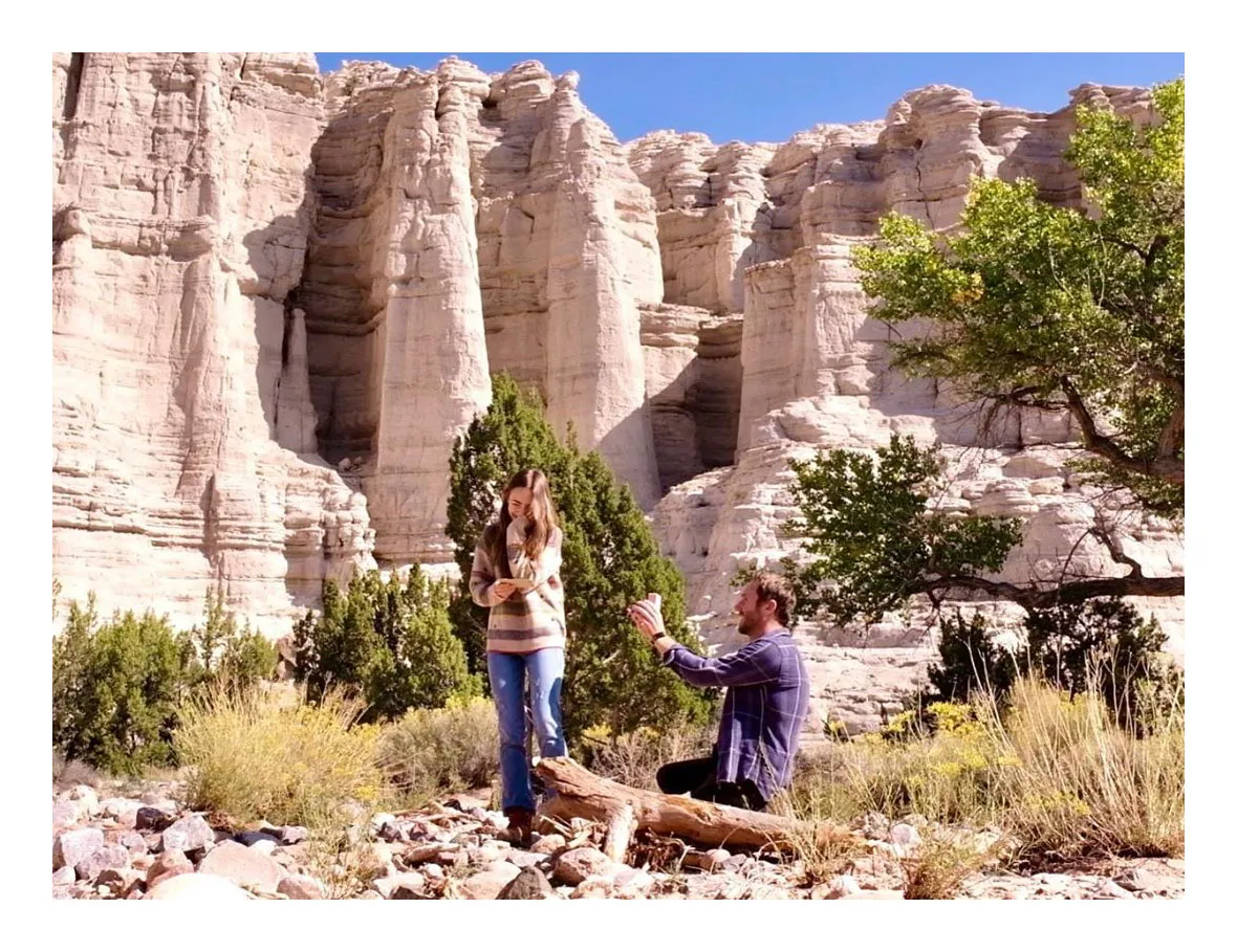 In the one sweet snap, McDowell, 37, planted a kiss on his new fiancée as she showed off her new bling. In another photo from the outdoor proposal, the writer is down on one knee as the actress got emotional.
