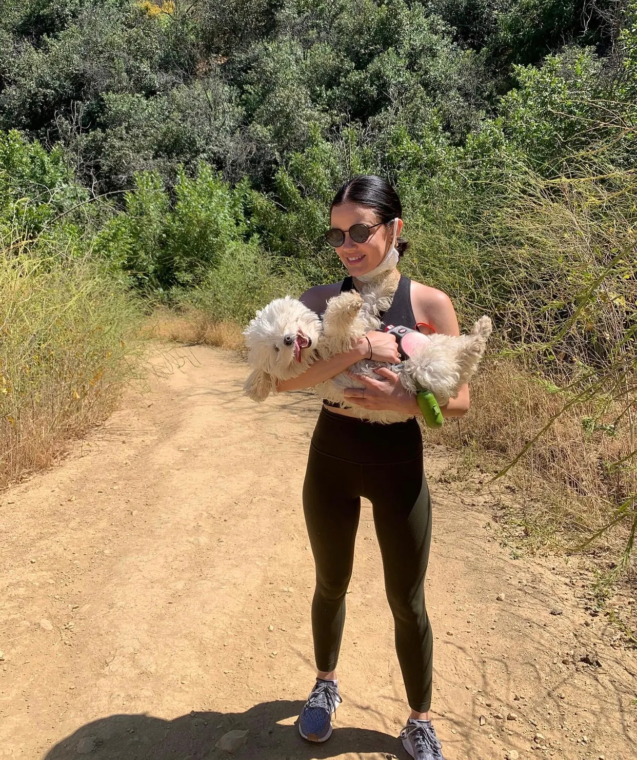 But hitting the trails isn’t the only active thing she does in a day. The Pretty Little Liars alum also hits her Peloton treadmill, which “I love,” she admits. “It came in handy during quarantine.”