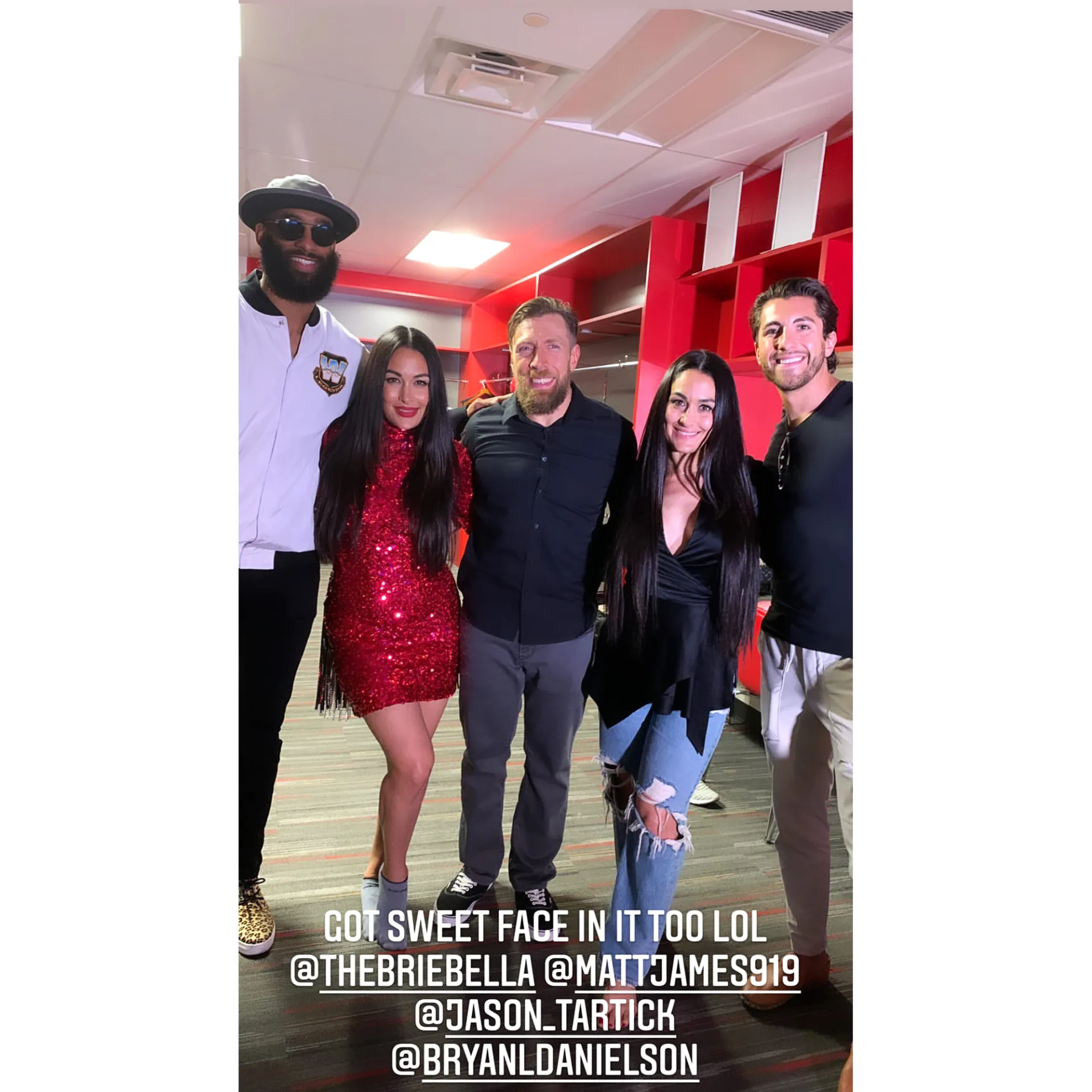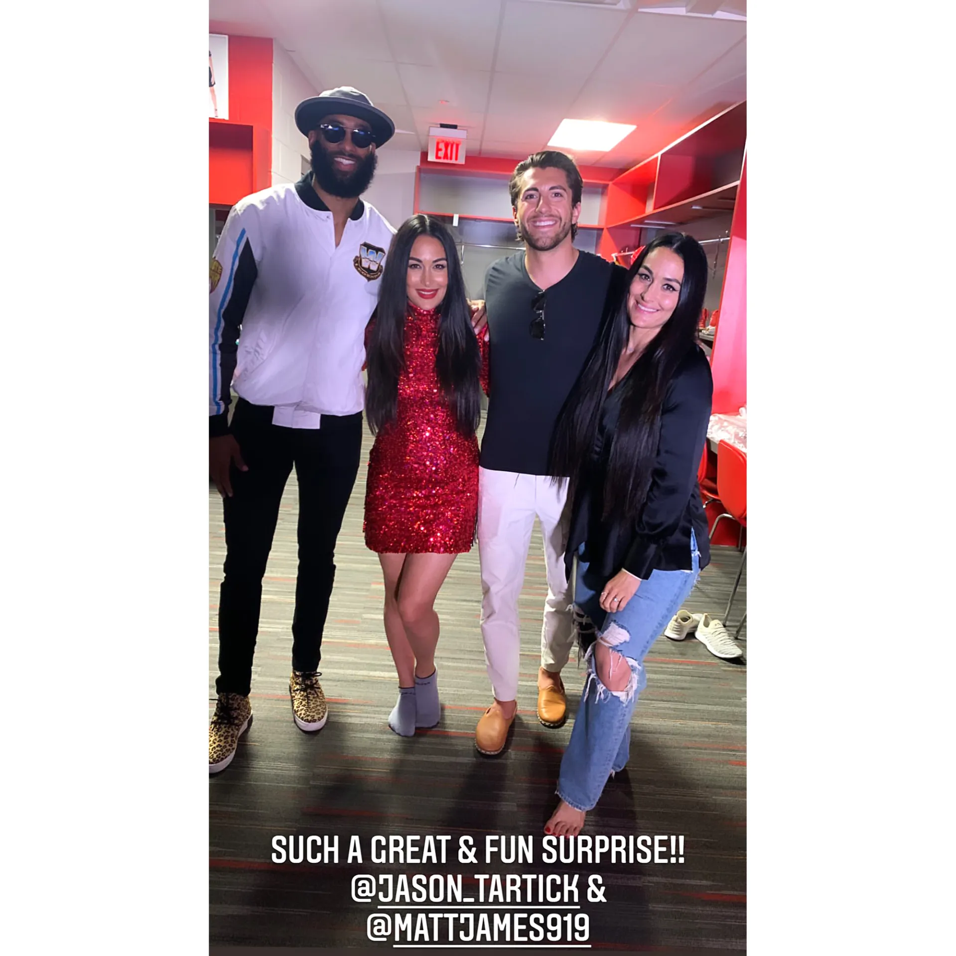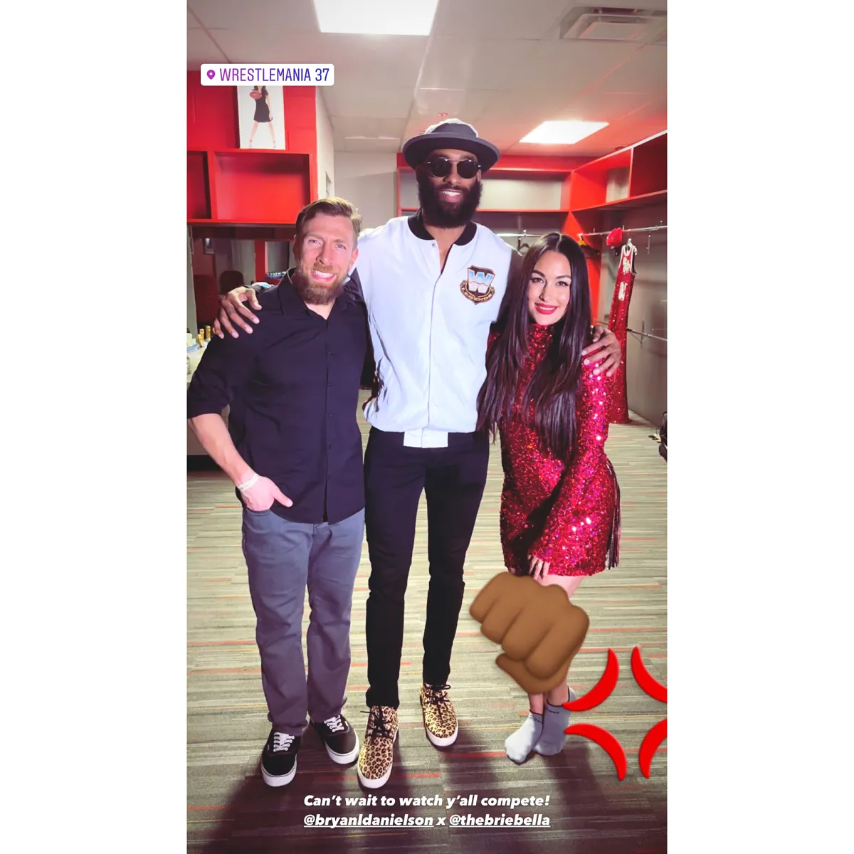 The 29-year-old former football player posed for photos with Nikki and Brie Bella (and husband Daniel Bryan) and fellow Bachelor Nation member Jason Tartick on Saturday, April 10. He also shared a video hyping up the crowd as he made his way into the arena at Raymond James Stadium.