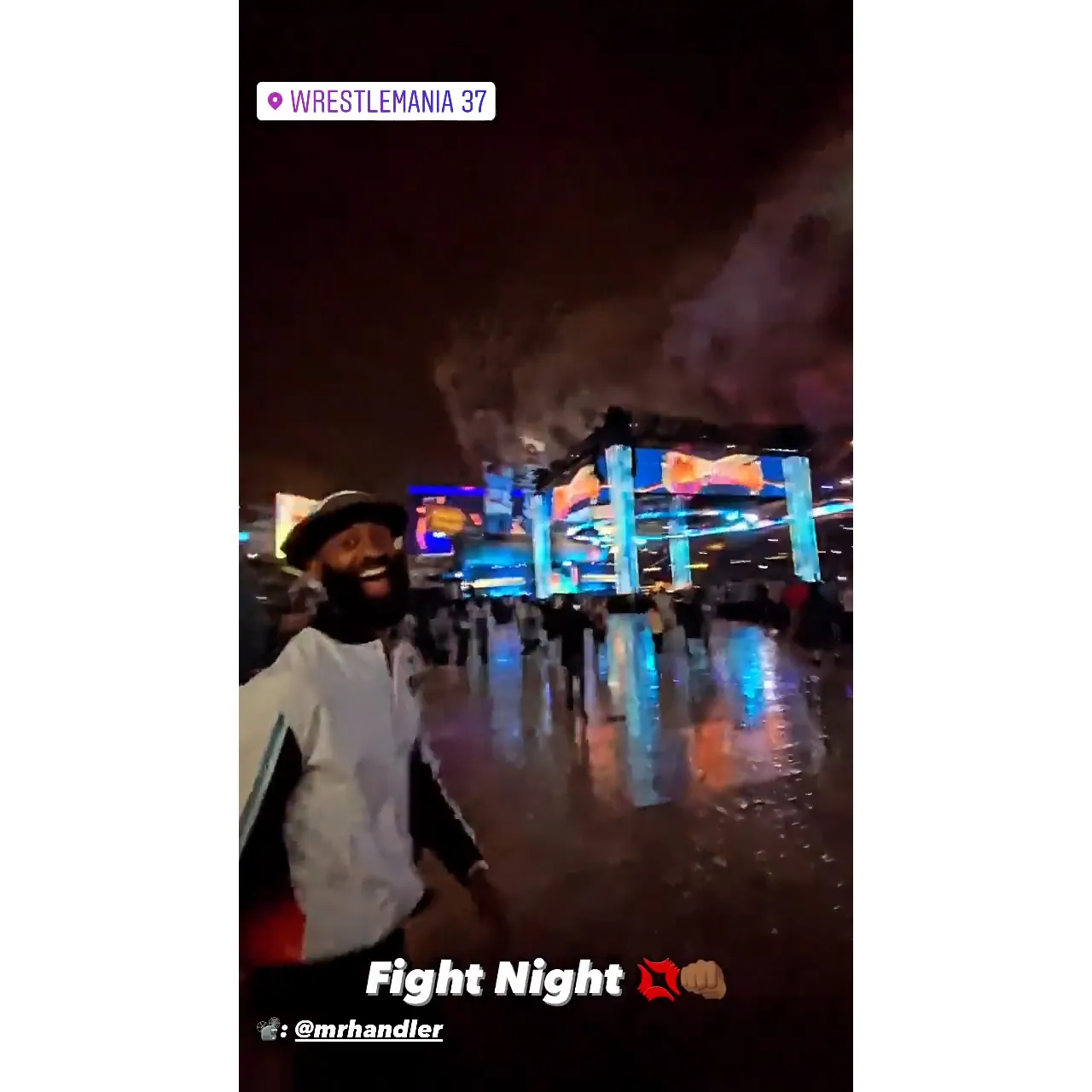 After his headline-making reunion with Rachael Kirkconnell, Matt James headed back to Florida for WrestleMania — and despite the drama with his ex, the former Bachelor was all smiles during the event.