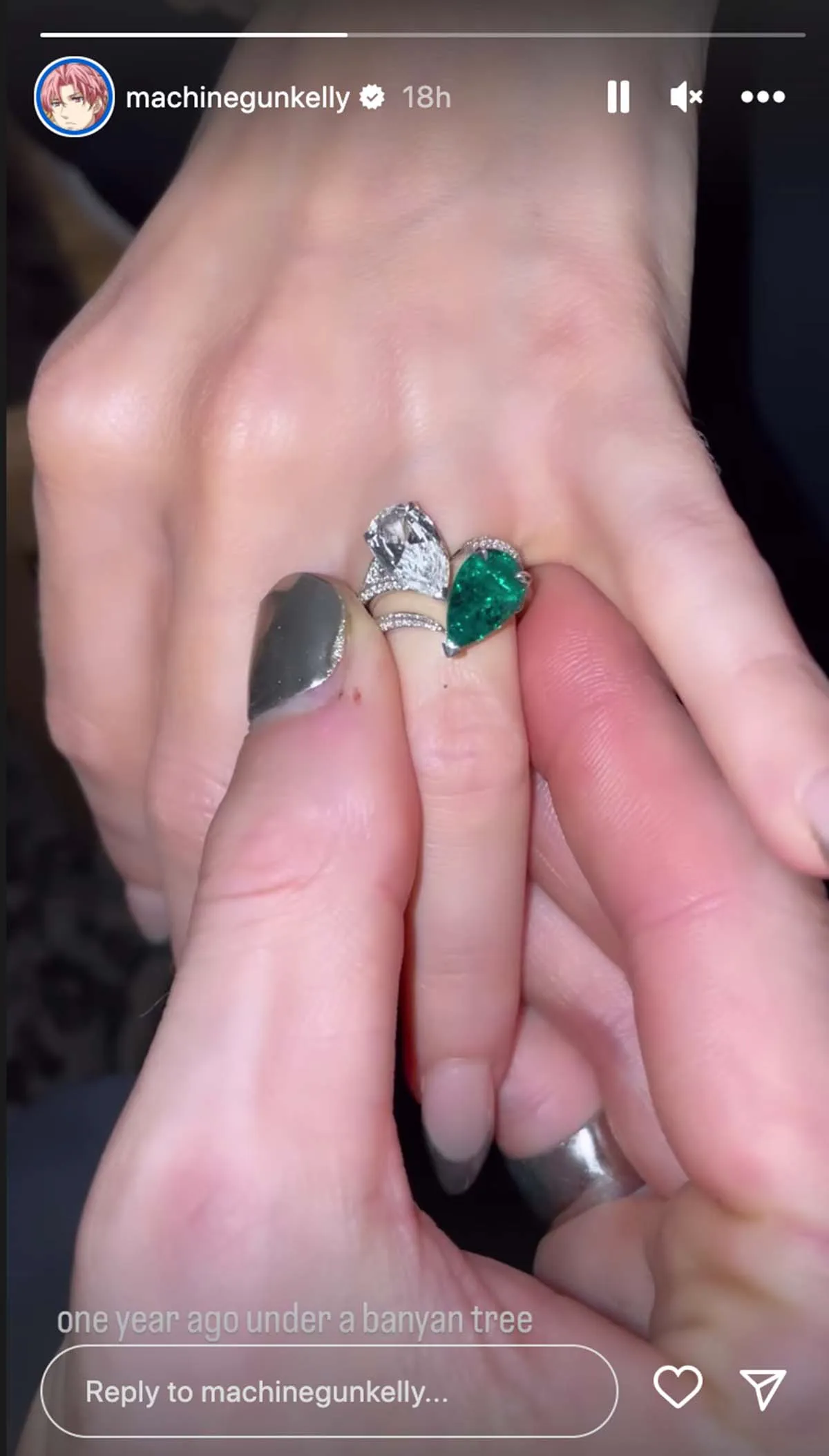 “One year ago under the banyan tree,” MGK wrote via his Instagram Story, referring to the location of his 2022 proposal, alongside a snap of Fox’s diamond ring.
