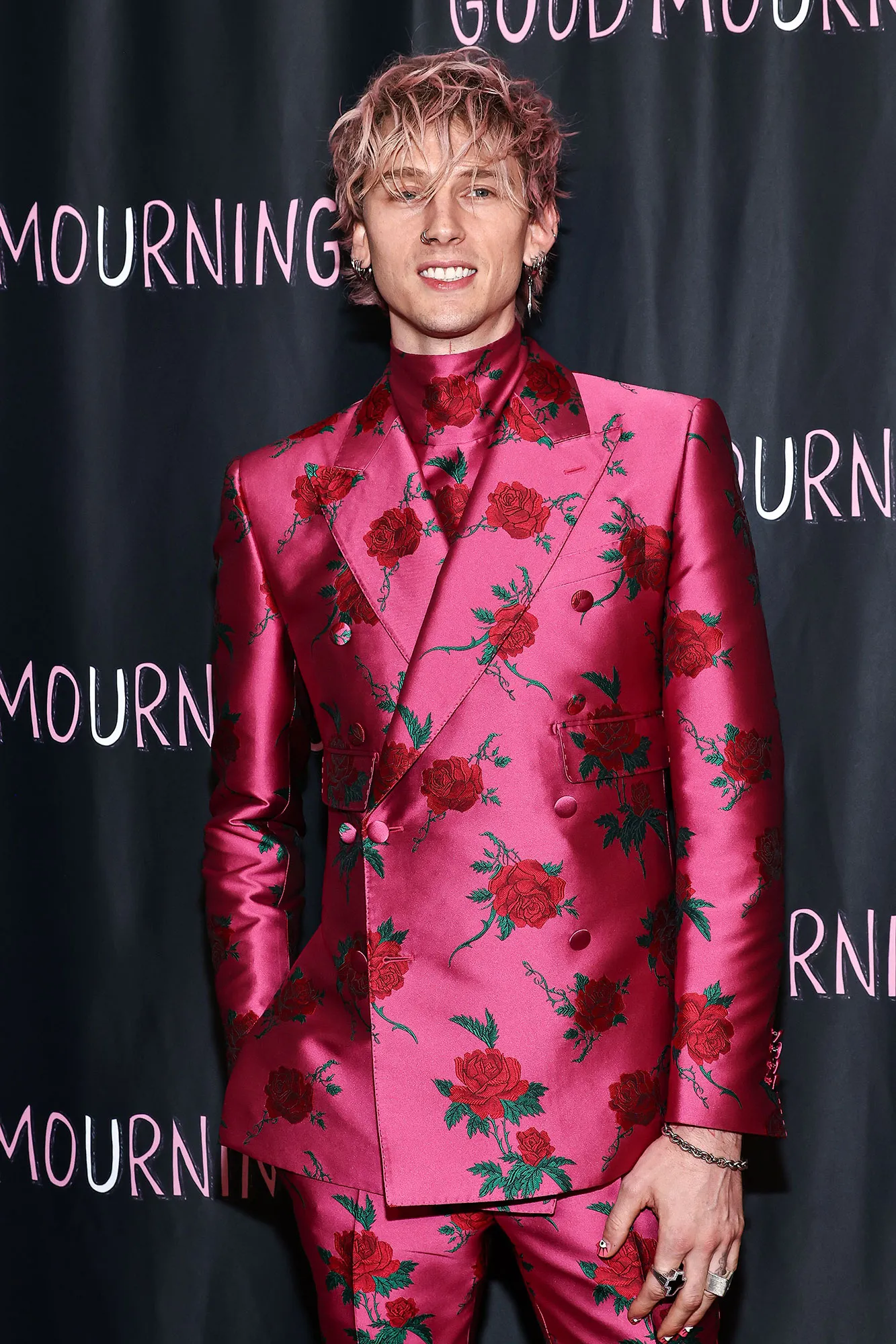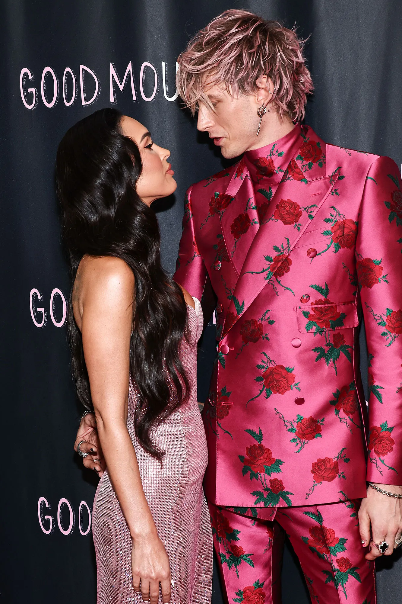 Color-coordinated on the red carpet! Machine Gun Kelly and Megan Fox stunned at the Good Mourning premiere with matching pink ensembles.