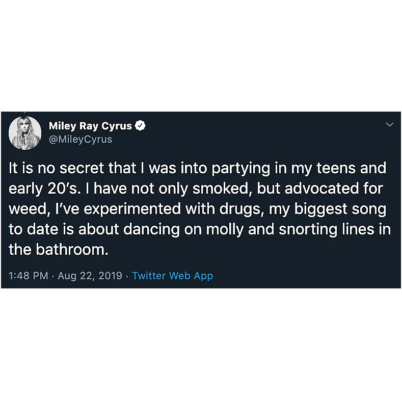 After Cyrus admitted that she “f–ked up and cheated in relationships” when she was younger, she listed several controversial moments from her past, including the footage of her smoking salvia from a bong in December 2010 and her ”Wrecking Ball” music video.