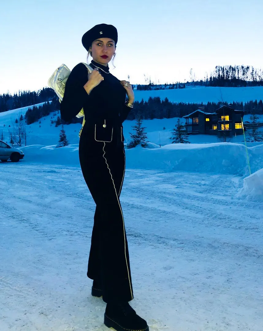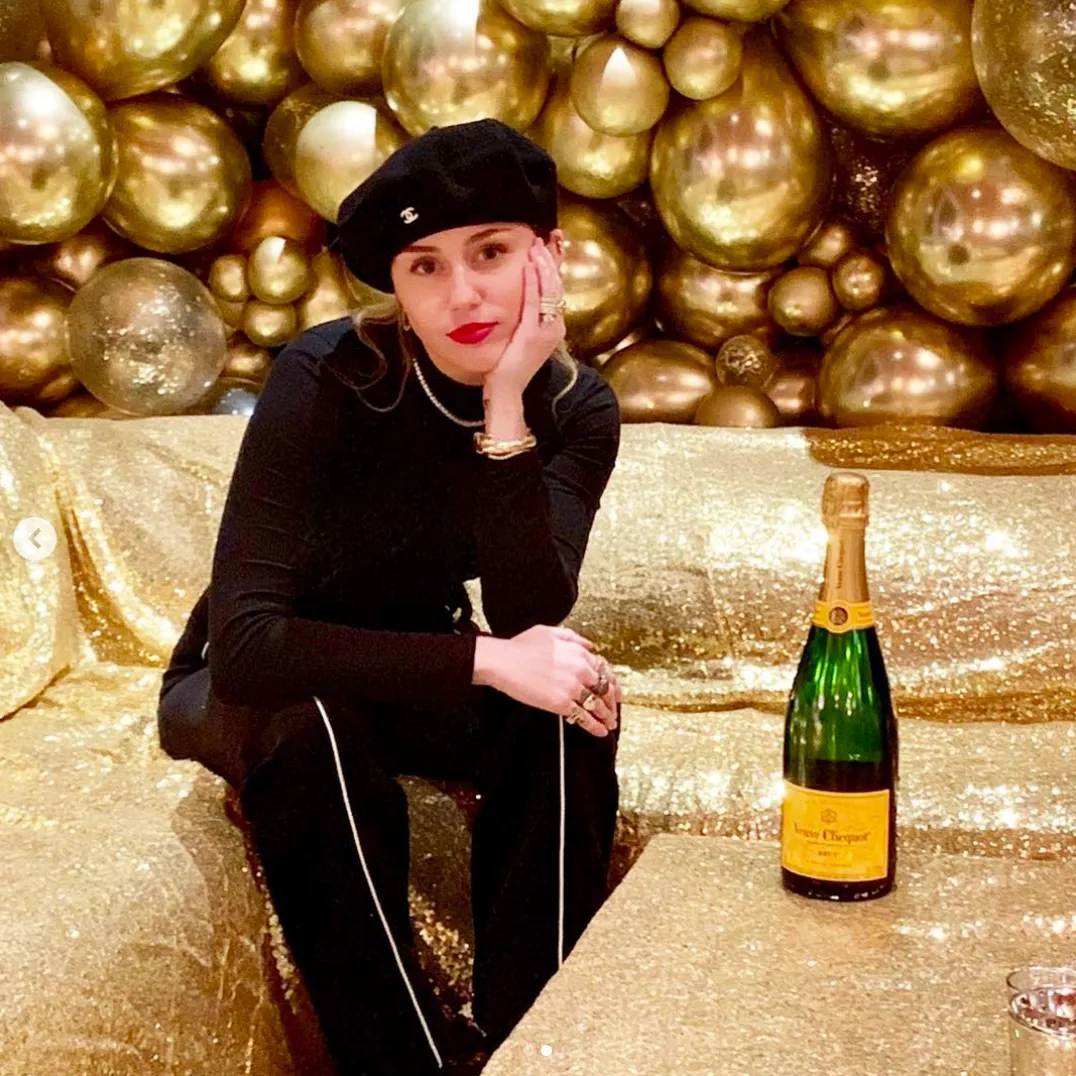 The singer, 26, shared photos on Instagram on Monday, December 31, showing her wearing an all-black outfit along with a matching beret as she stood on a snow-covered path and then posed with a bottle of champagne as she sat on a gold-draped sofa and by a stone fireplace decorated with 2019 spelled out with balloons.