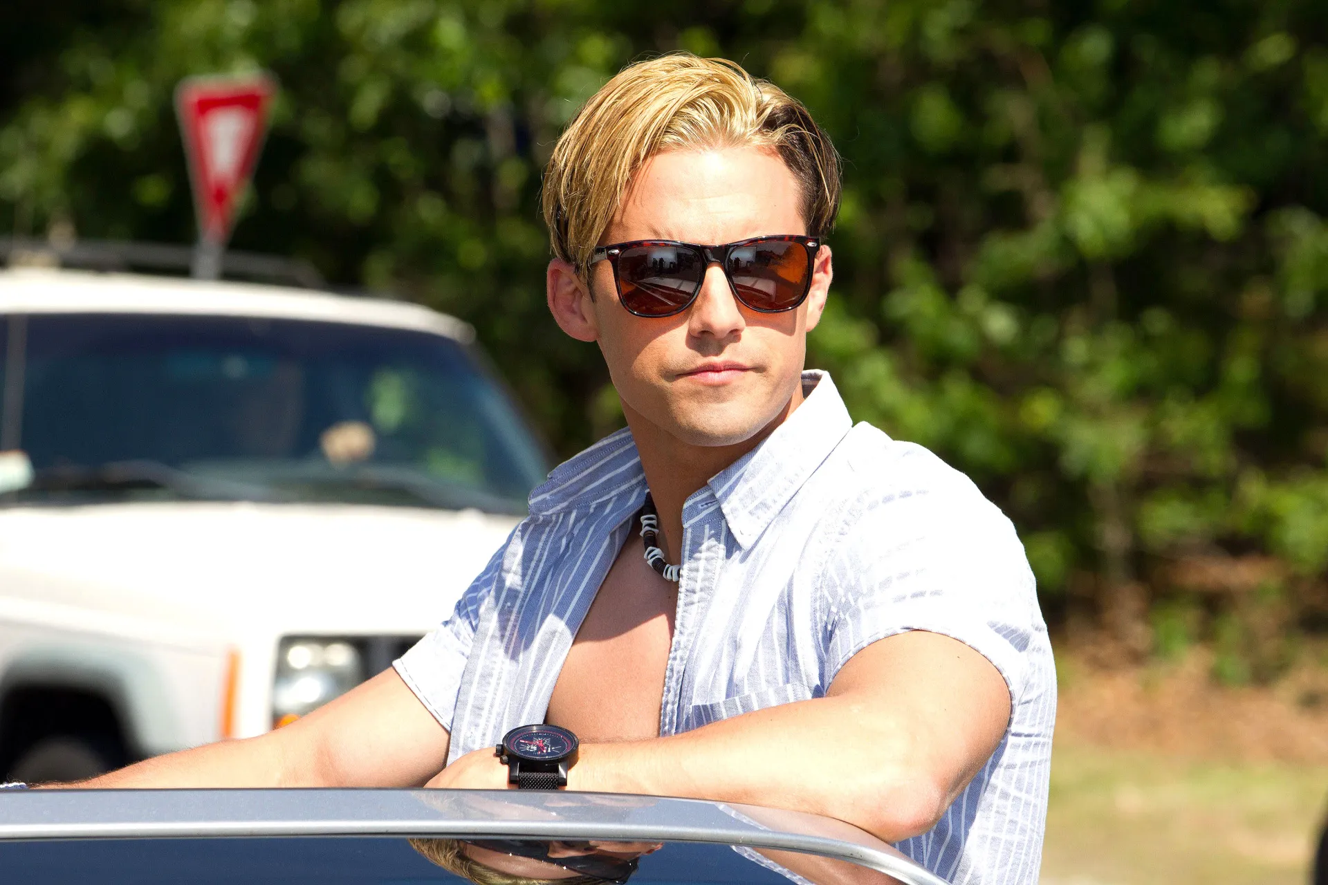“I’d gotten off a plane, a red eye, to get to work on my first day and they told me, ‘Hey, it’s the scene post-shower and you’ll have your shirt off and you’ll walk across the room to get your shirt,'” he shared. “And I went, ‘Oh, OK.'”