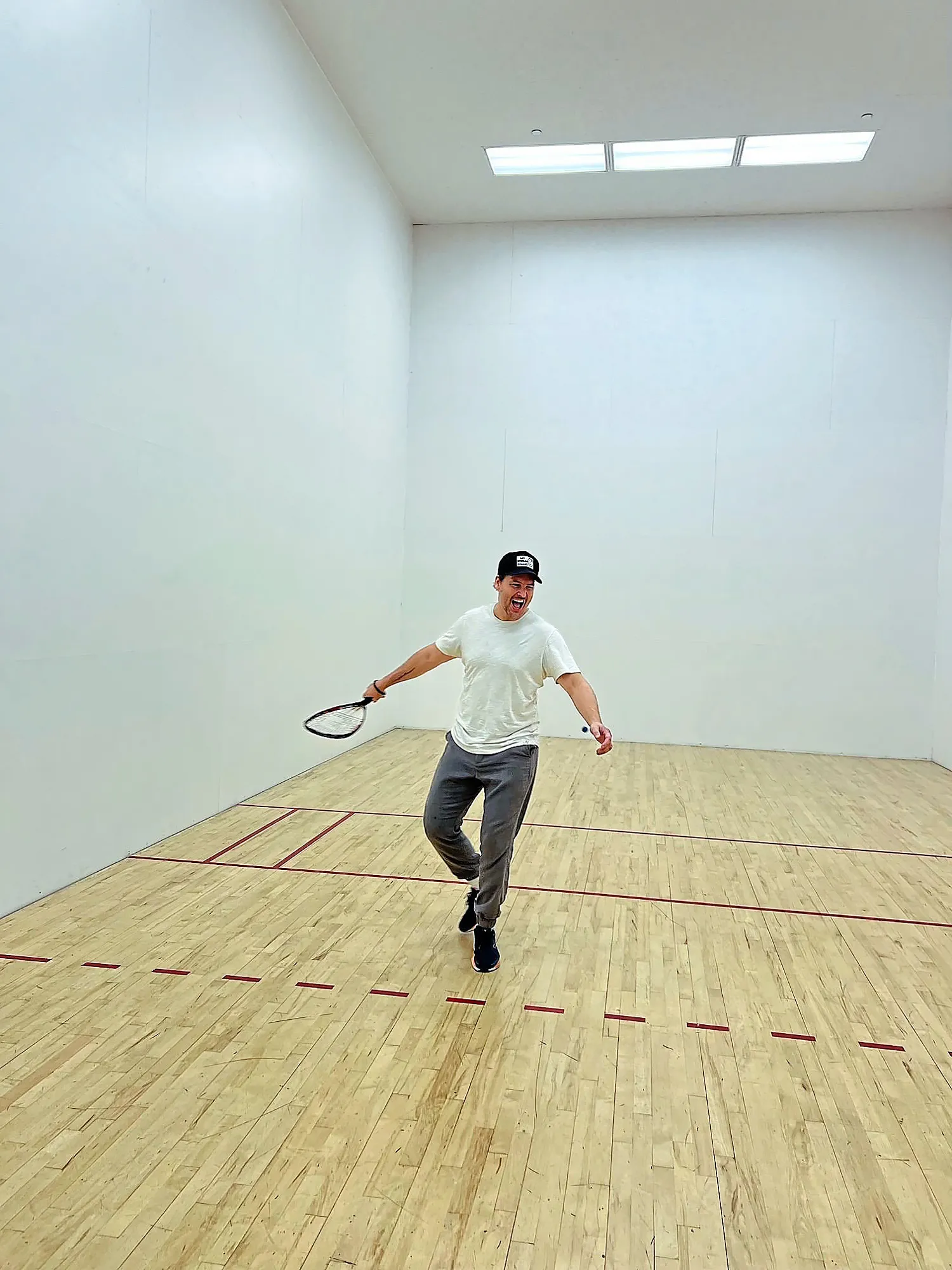 Facinelli continues his morning routine with a round of racquetball. The game is one the On Fire star has strong opinions about — “Pickleball may have swept the nation, but I keep it old school,” he tells Us.