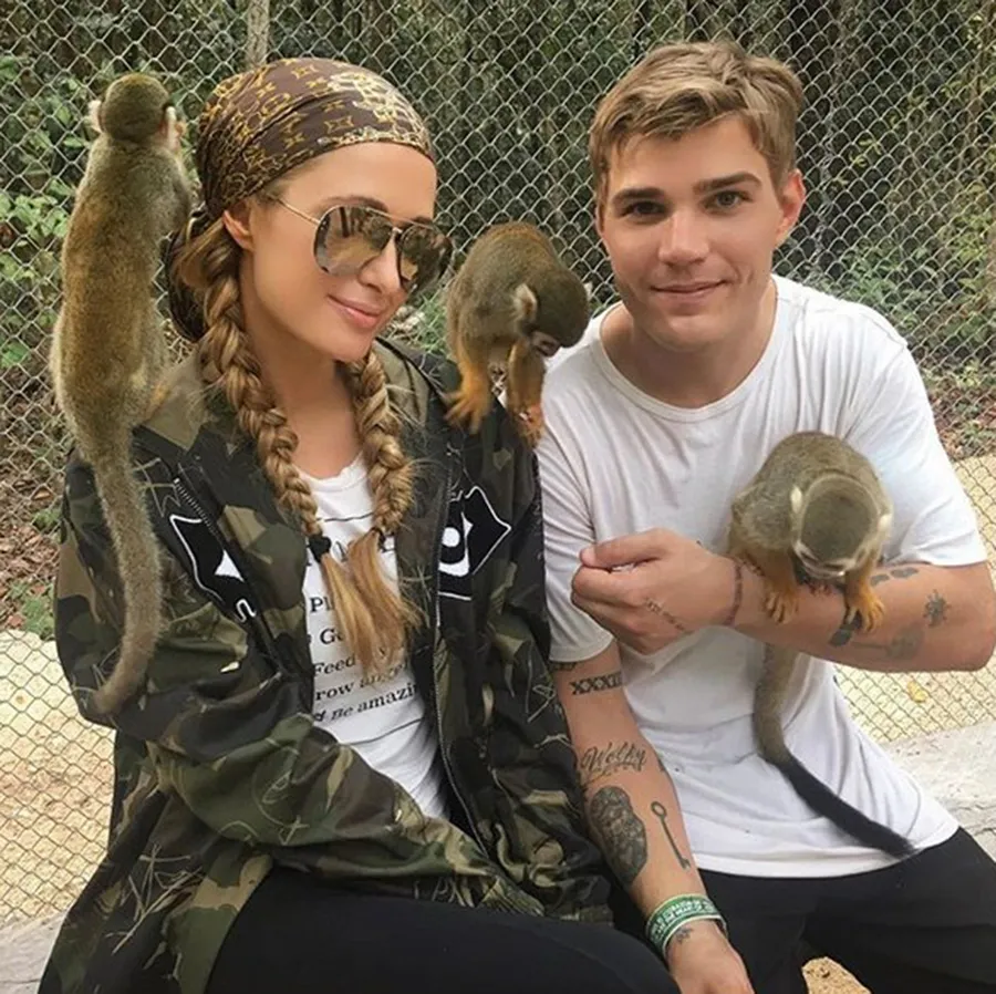 Paris Hilton and fiancé Chris Zylka hung with some furry friends in their natural habitat at Akumal Monkey Sanctuary.