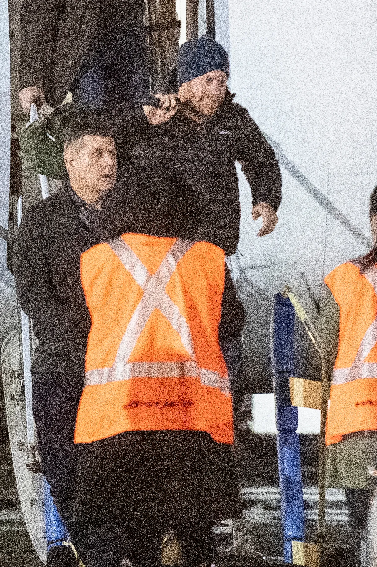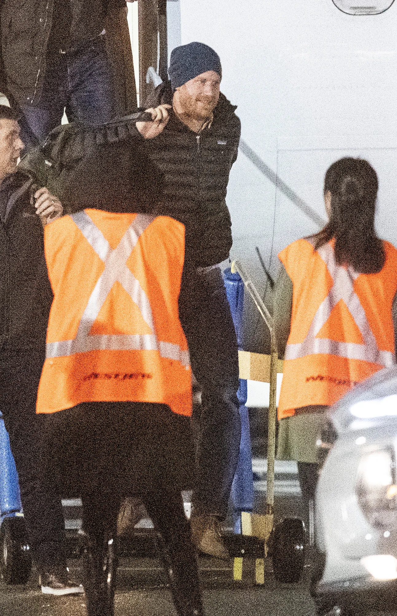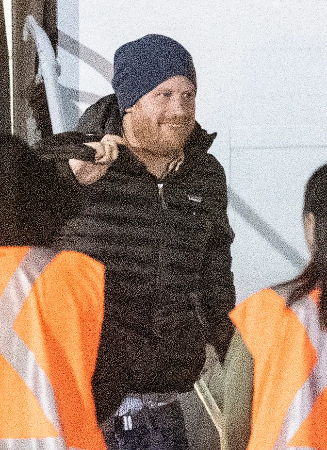 Harry, 35, was spotted deboarding a plane in the early hours of Tuesday, January 21, with a bag slung over his shoulder. He appeared to be in good spirits while dressed casually in a black puffer jacket, blue jeans, tan suede boots and a navy beanie.