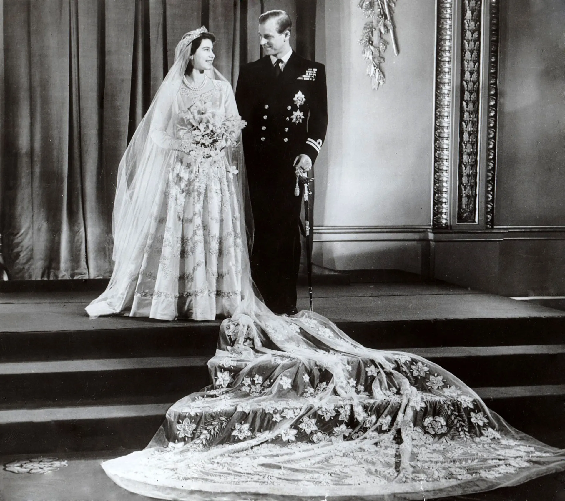 Philip and Elizabeth wed in front of 2,500 guests in Westminster Abbey on November 20, 1947. The ceremony was recorded and broadcast on BBC Radio to 200 million people around the world. Philip’s title changed from Lieutenant Philip Mountbatten to His Royal Highness Prince Philip, Duke of Edinburgh. The duo’s marriage is the longest of any British sovereign.