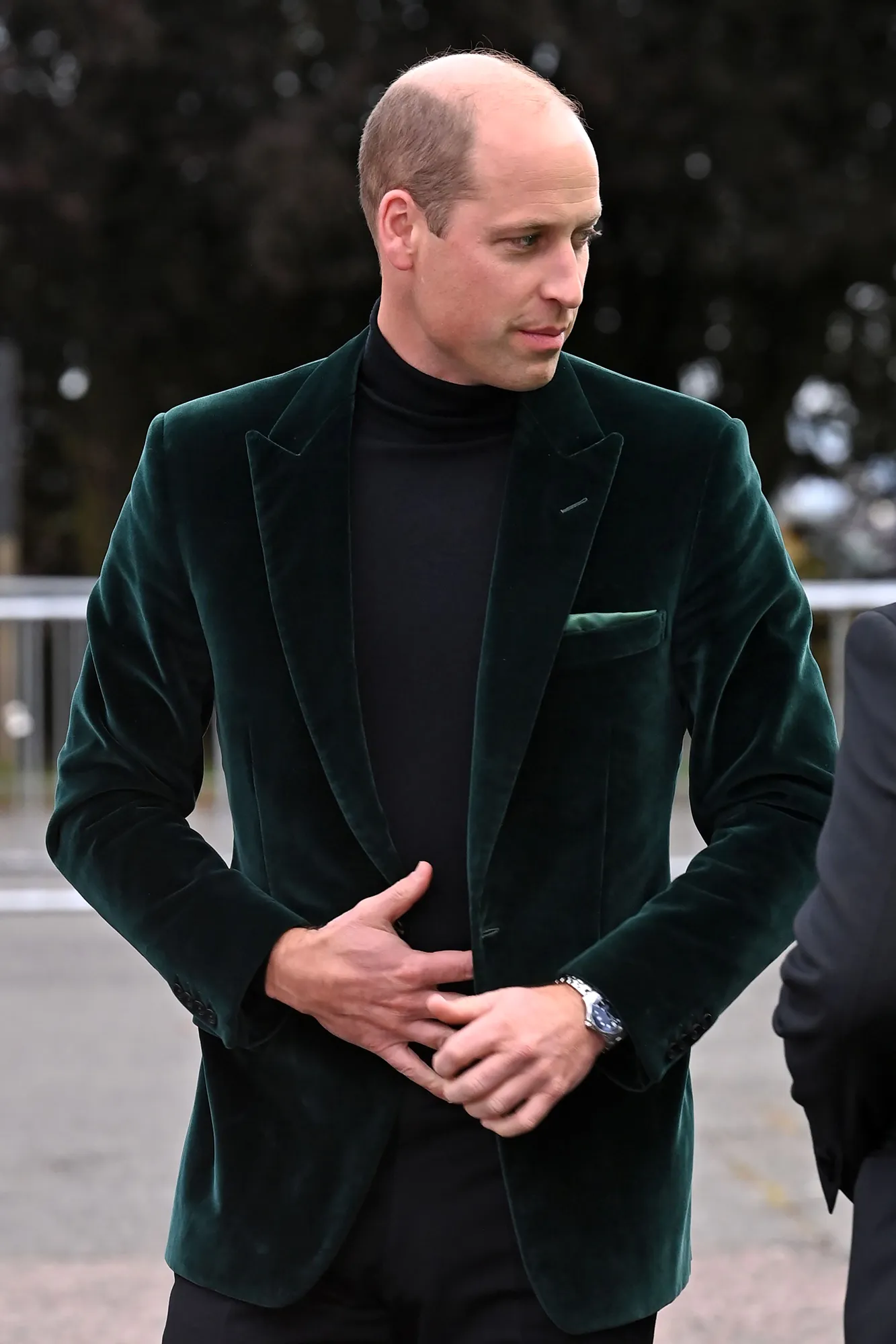 Her husband, for his part, looked dapper in a green velvet blazer — to match the green carpet — with a black turtleneck and trousers underneath.