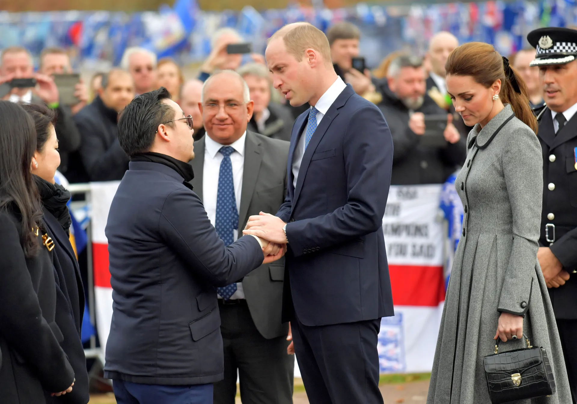 Prince William and Duchess Kate stepped out in Leicester, England, to honor victims who lost their lives in an October helicopter crash.
