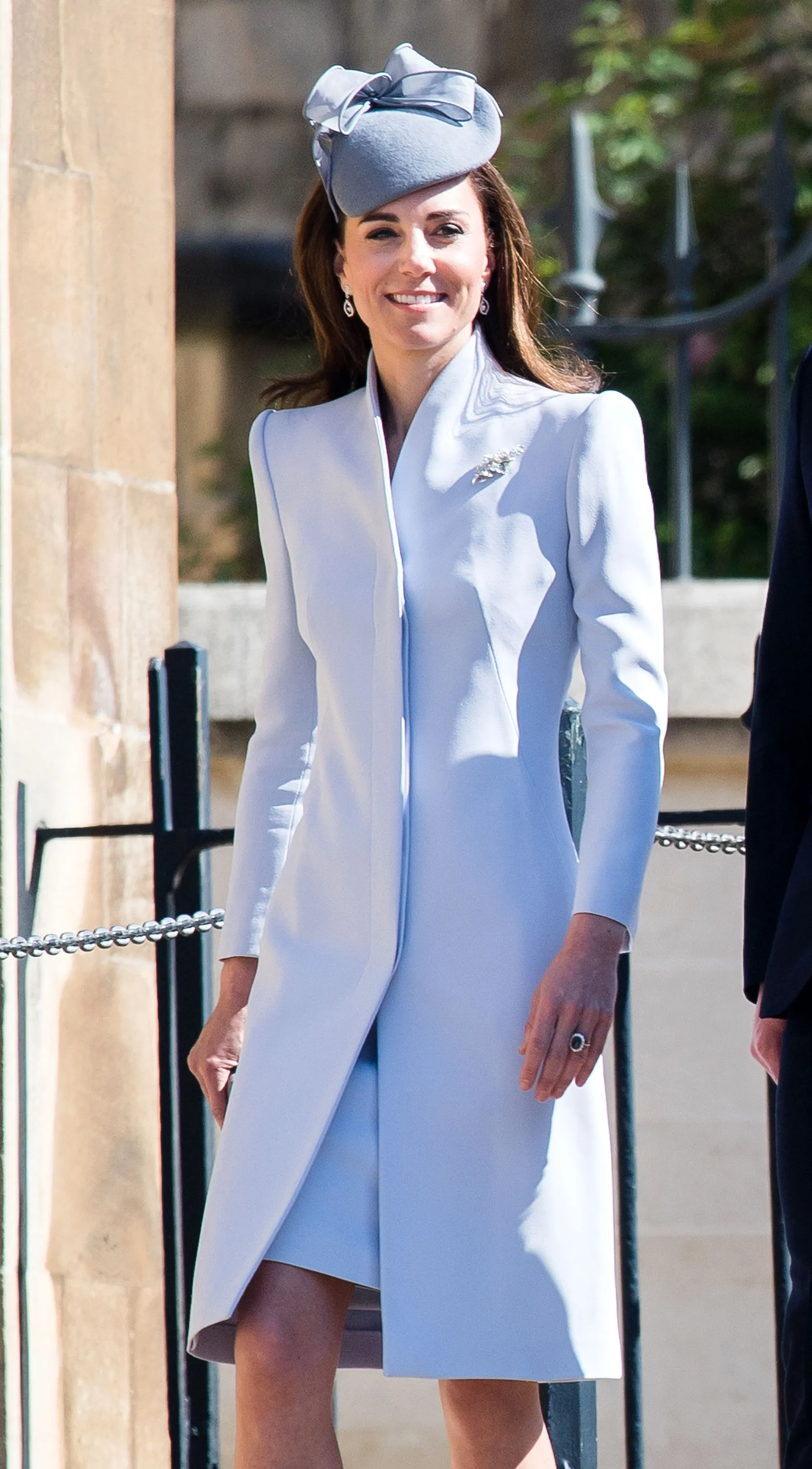 The Duchess of Cambridge, 37, looked picture perfect as she stepped out wearing a powder blue coat with a matching dress and fascinator. She paired the ensemble with a pair of nude heels and her best accessory — a smile. William, 36, walked alongside his wife and sported a navy blue suit with a complementary tie. The pair appeared to giggle with each other as they strolled into the church.
