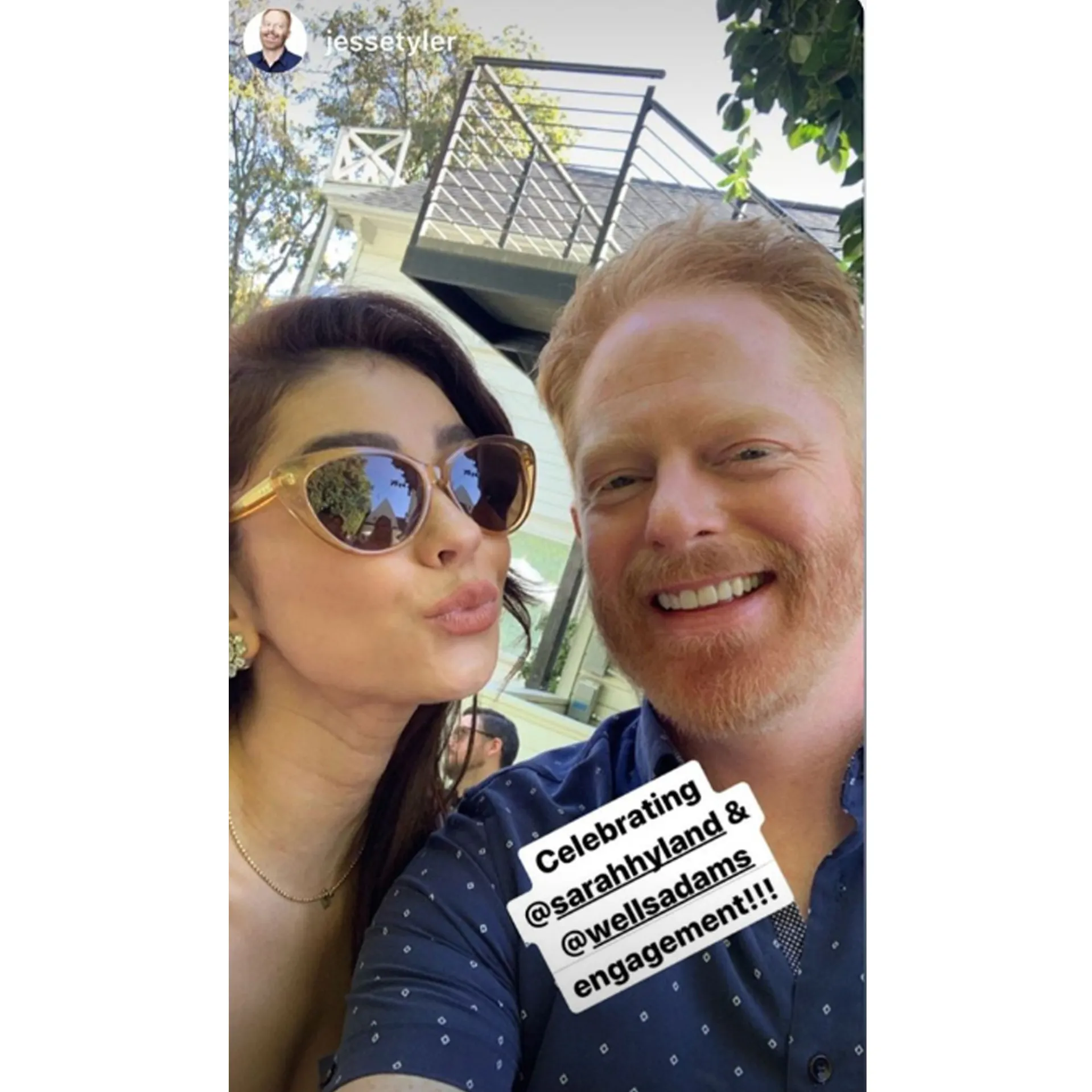Hyland’s Modern Family costar Jesse Tyler Ferguson shared a selfie with his on-screen niece with the caption, “Celebrating @sarahhyland & @wellsadams engagement!!!” The Fully Committed actor also shared a behind-the-scenes look at Hyland and Adams’ first dance postcards. The couple asked family and friends to write down song suggestions for their first dance at their upcoming wedding.