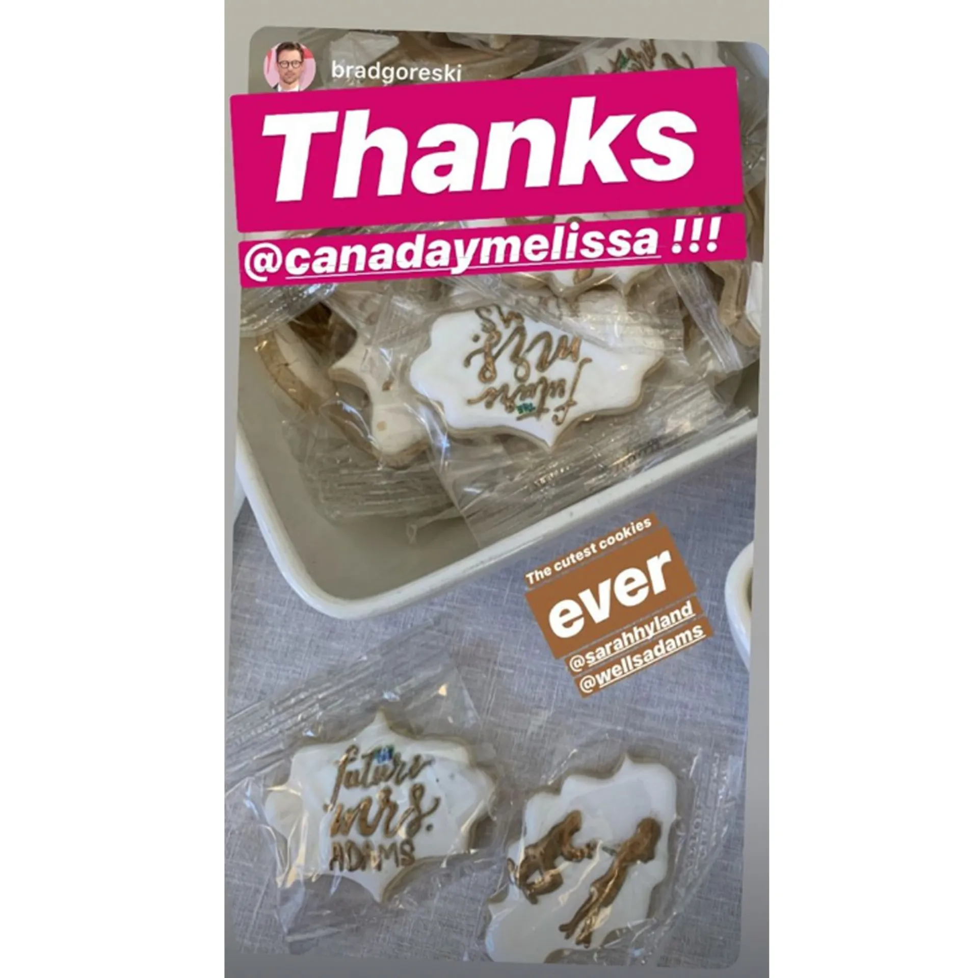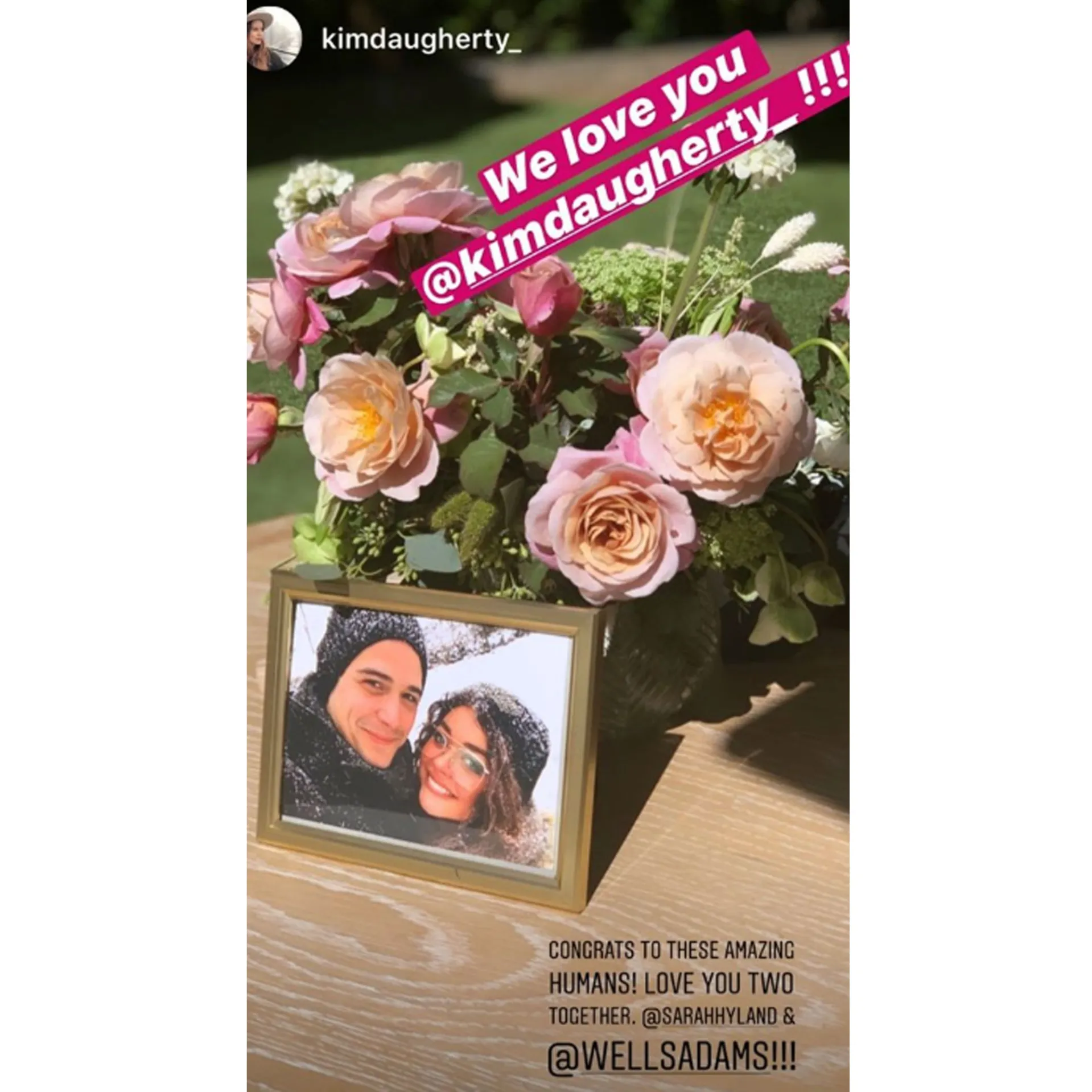 The 28-year-old also reposted several snaps taken by her celebrity friends on her Instagram Story. Pretty Little Liars star Kim Daugherty shared a photo of a pink floral arrangement and a framed picture of the happy couple with the caption, “Congrats to these amazing humans! Love you two together. @sarahhyland & @wellsadams!!!”