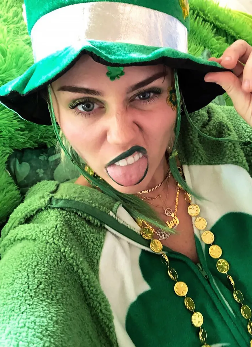 Cyrus made the most of her 2018 St. Patrick’s Day celebrations, grabbing every article of green clothing she could find for her party outfit. “Itszzzzz EZ being green!” she tweeted, sticking her tongue out and tipping her leprechaun hat to her followers.