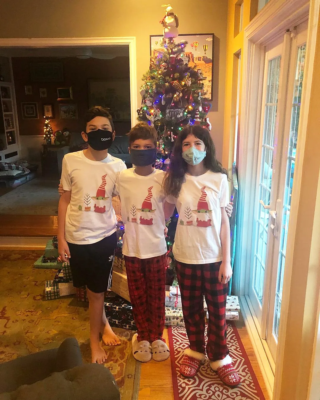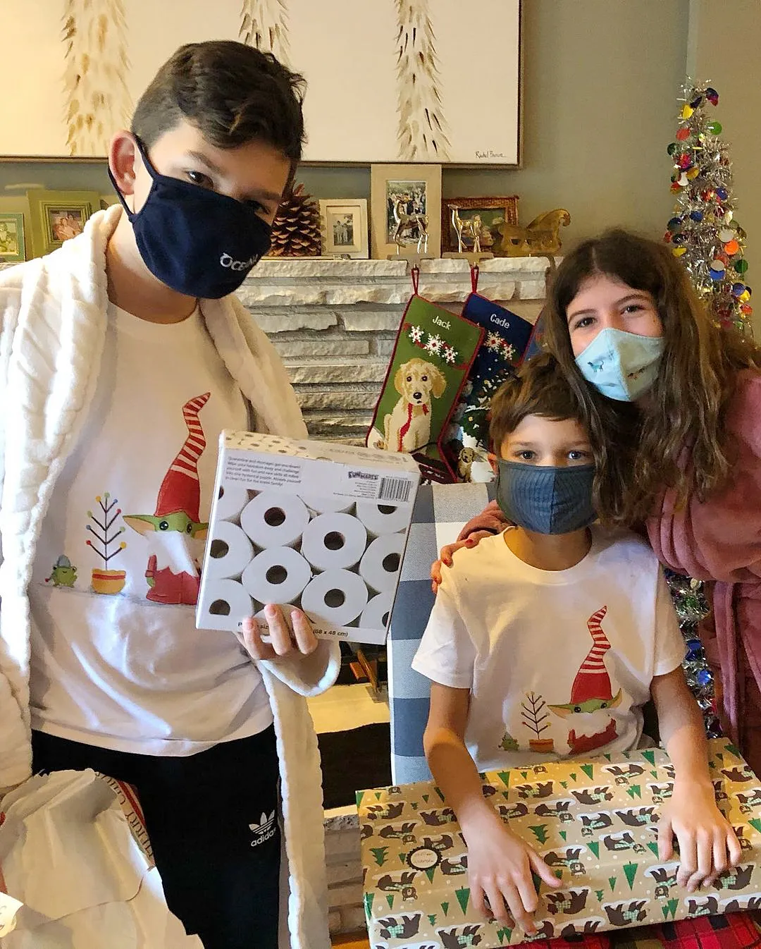 On Friday, December 25, she posted a photo of her three children posing in matching pajamas in front of the Christmas tree. All three were wearing masks.